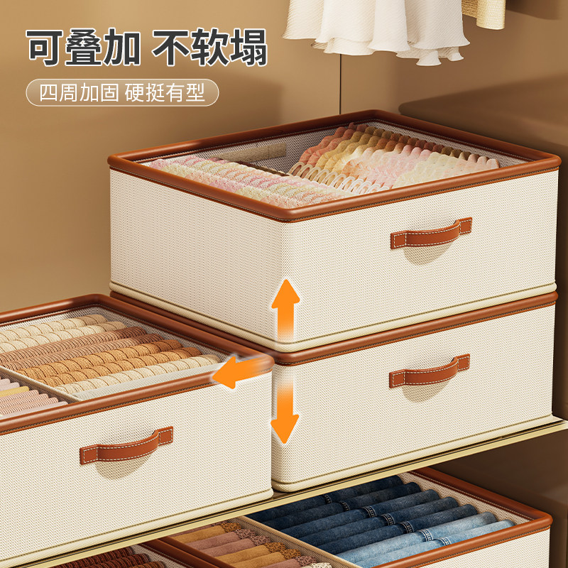 天山棉麻收纳筐衣柜收纳整理分层神器PP板可水洗衣服储物盒收纳箱