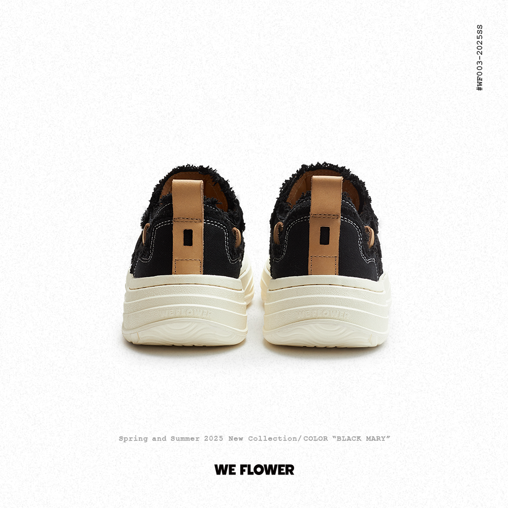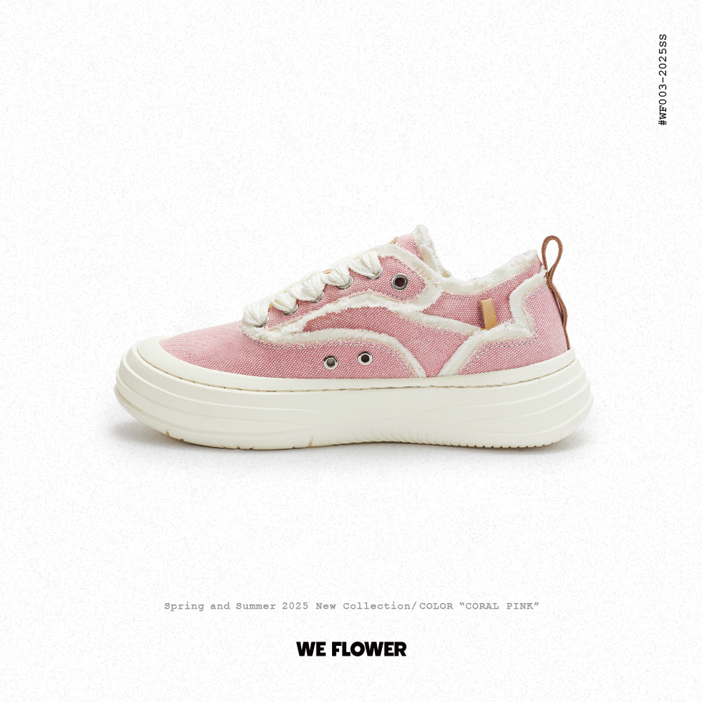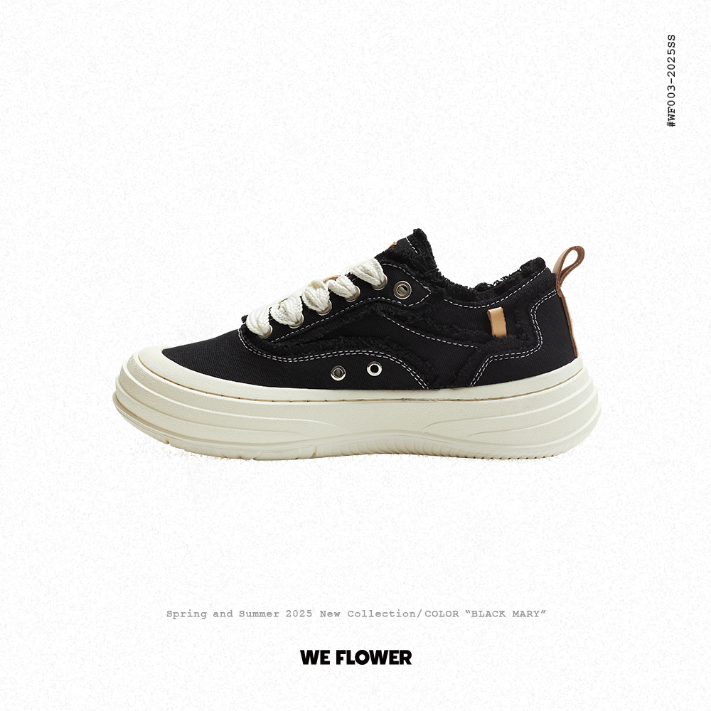 We flower春夏新款男女百搭波浪帆布鞋厚底小白板鞋休闲运动鞋