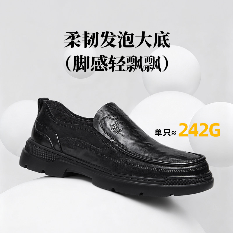 骆驼男鞋2026春季新款免系牛皮革软底商务皮鞋休闲舒适厚底爸爸鞋