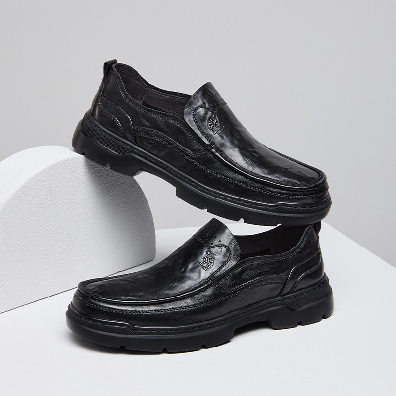 【小牛皮】青润chioryn袋鼠鞋男黑色真皮增高厚底休闲通勤风皮鞋
