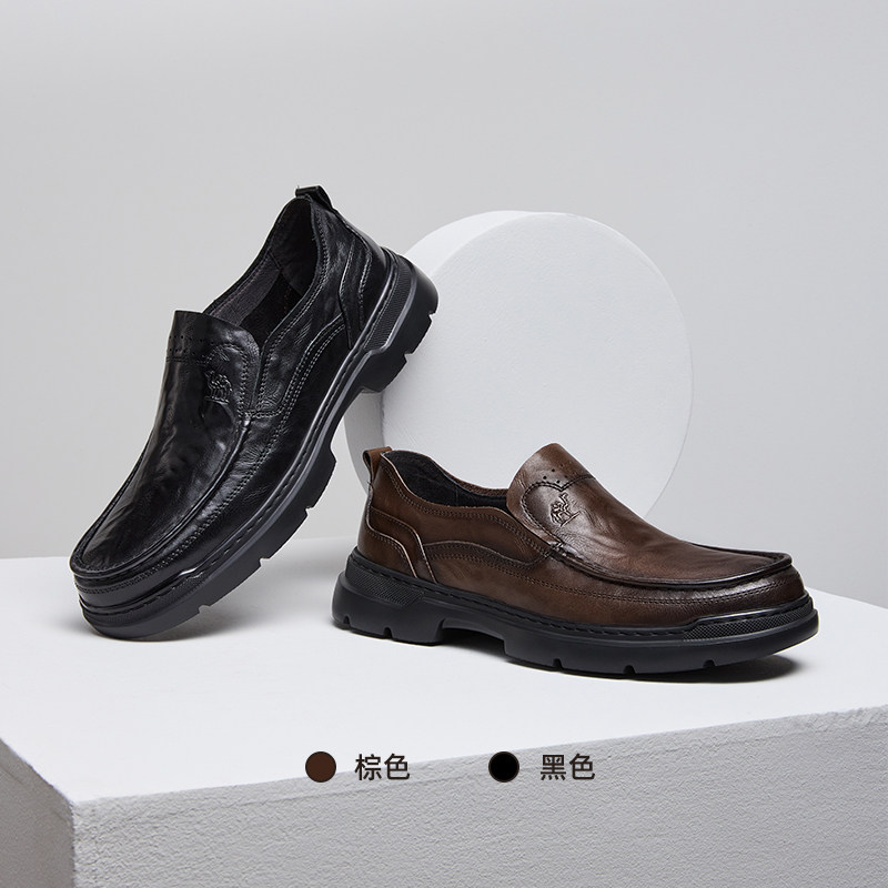 奥康官方男鞋春秋季真皮商务休闲皮鞋时尚套脚平底脚蹬舒适爸爸鞋
