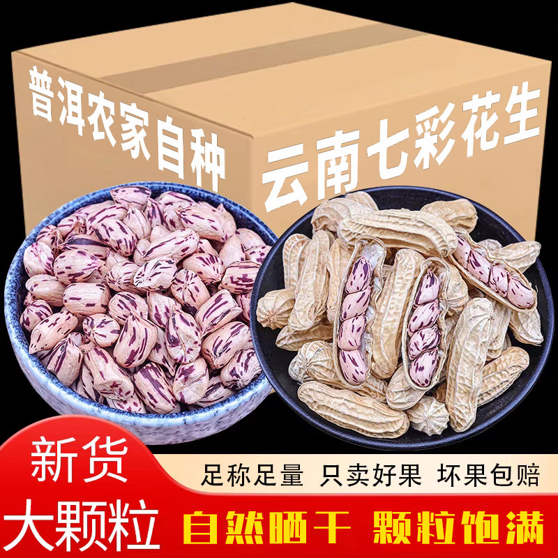 云南七彩花生晒干带壳原味熟花生野地花生米年货休闲健康零食零食