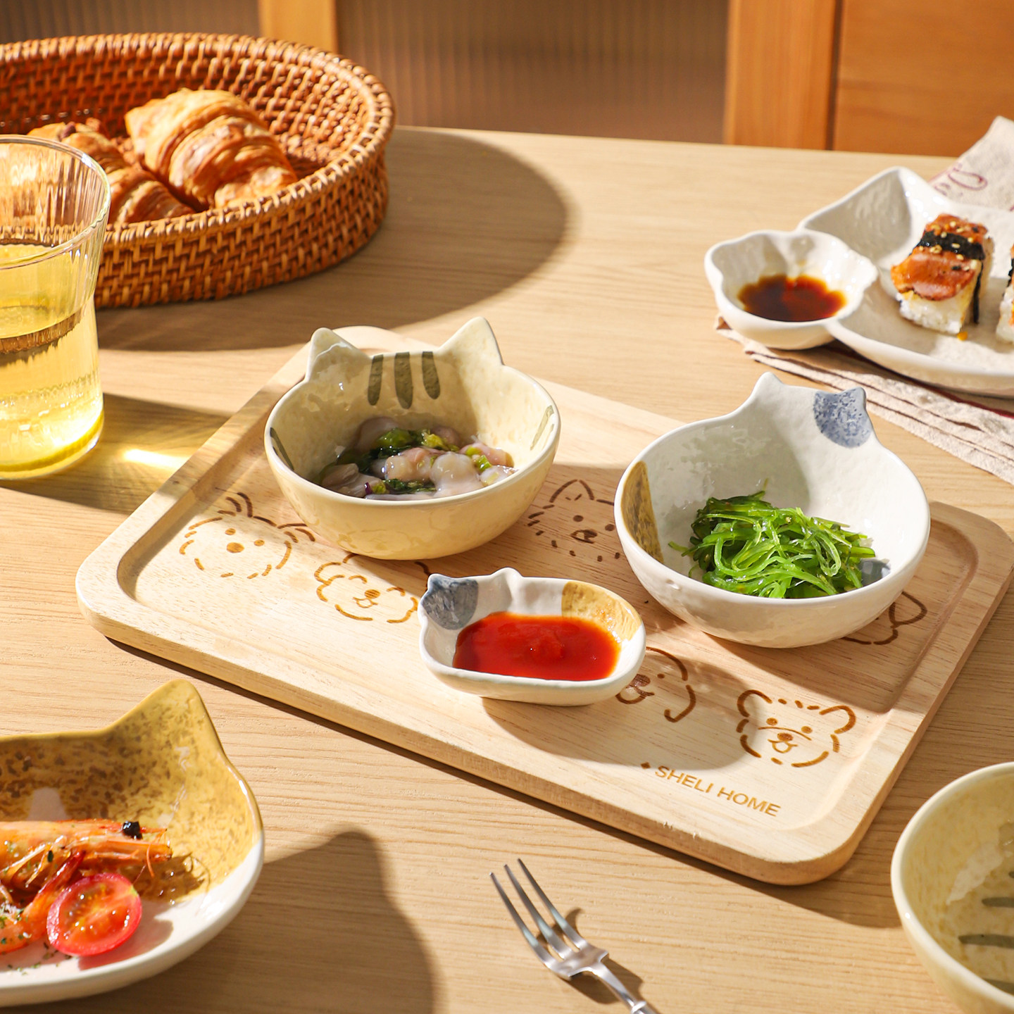 舍里陶瓷猫耳碟家用调料碟蘸料小碗可爱小菜点心碟火锅烤肉调味碟