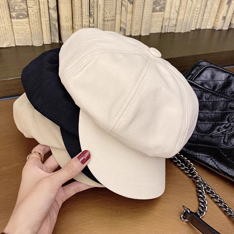 黑色鸭舌帽子贝雷帽女2024秋冬新款报童帽显脸小八角帽大头围画家