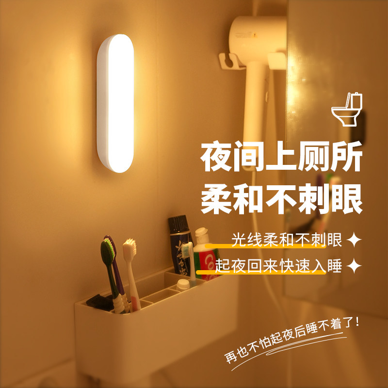 人体感应灯夜间自动亮灯家用走廊过道厕所智能声控充电小夜灯床头