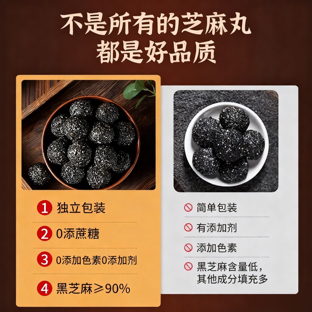 九蒸九晒黑芝麻丸无蔗糖养生熬夜生发即食纯芝麻糕零食球休闲小吃