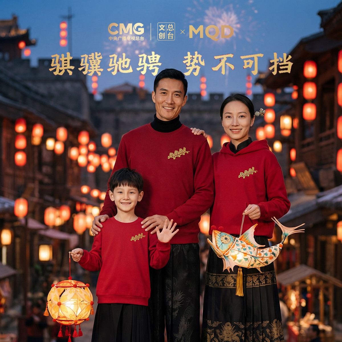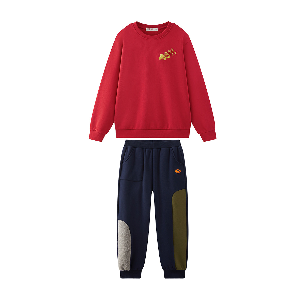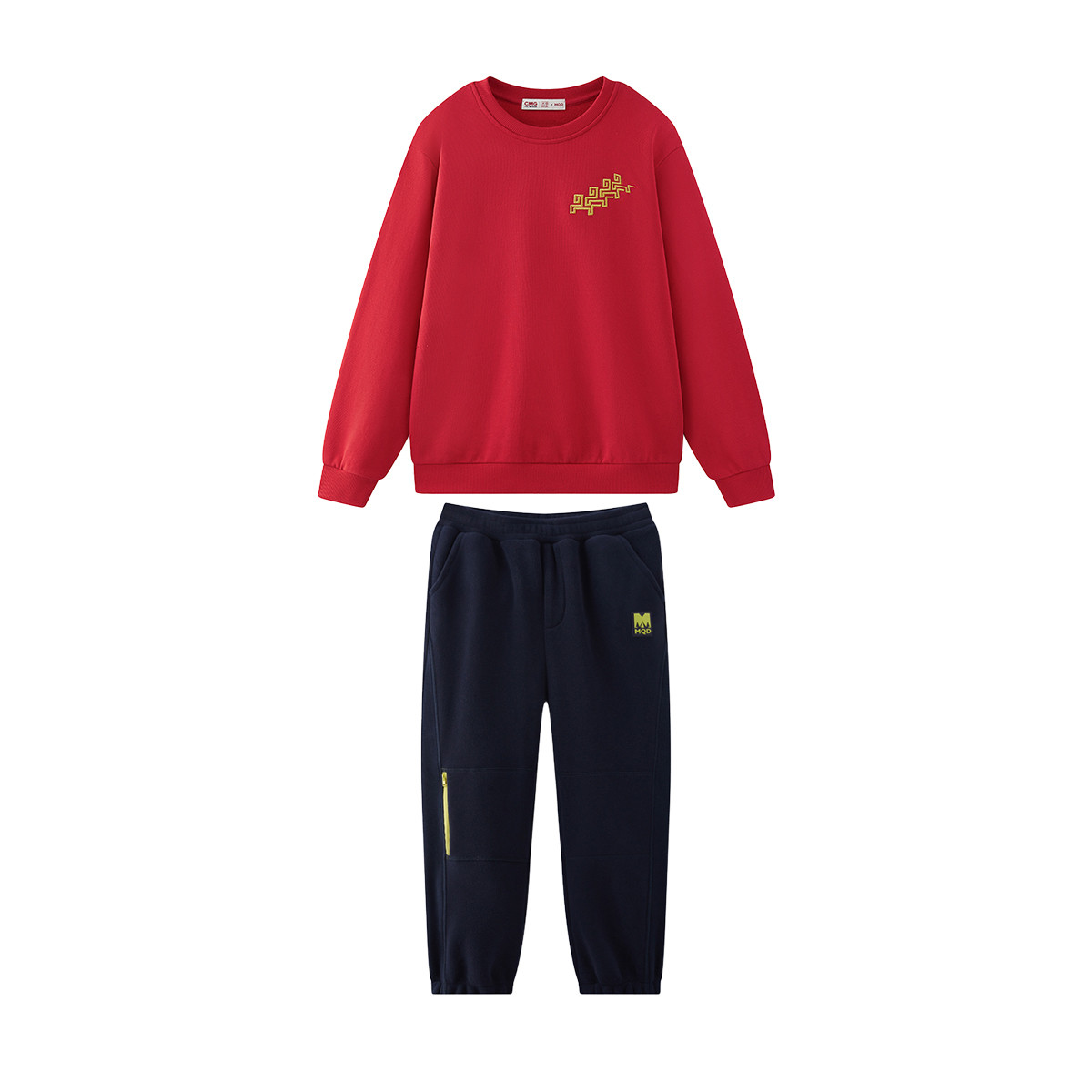 MQD童装儿童红色卫衣裤子套装2026马年新年亲子装男女同款拜年服