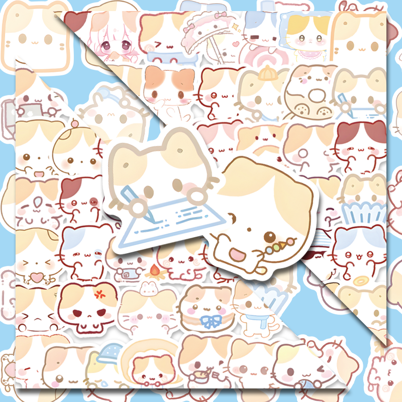 棉花糖猫贴纸儿童女孩装饰小图案可爱行李箱防丢打包素材手账diy防水