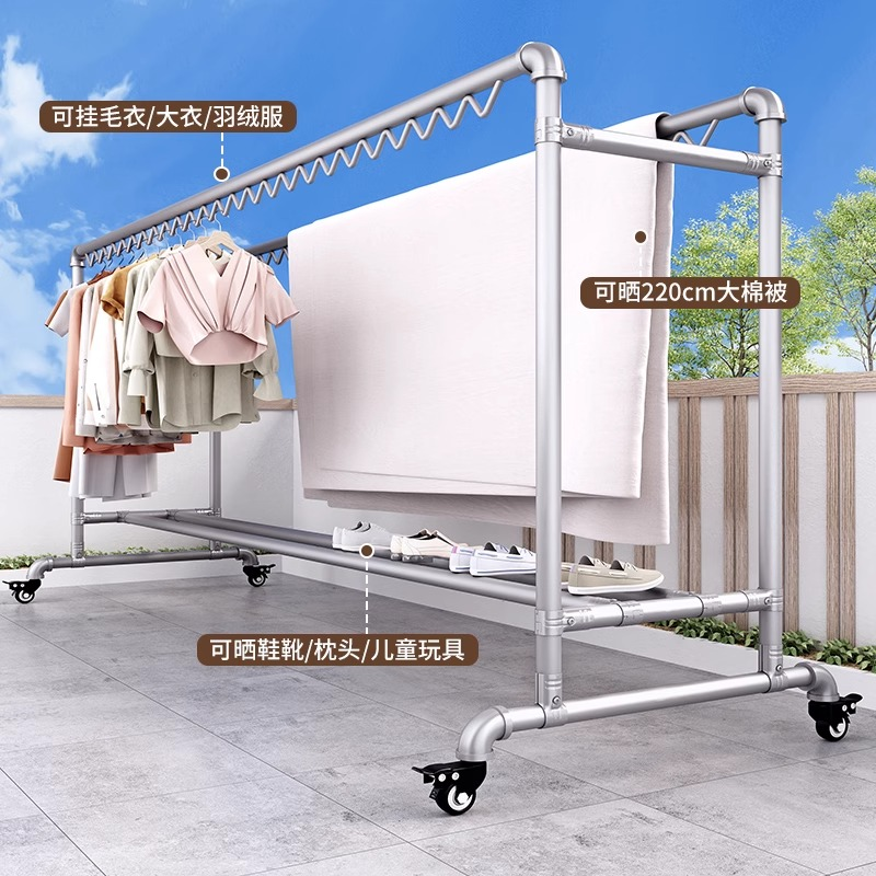 镀锌钢管晾衣架落地家用阳台卧室户外晒衣架简易双杆晒被子凉衣杆