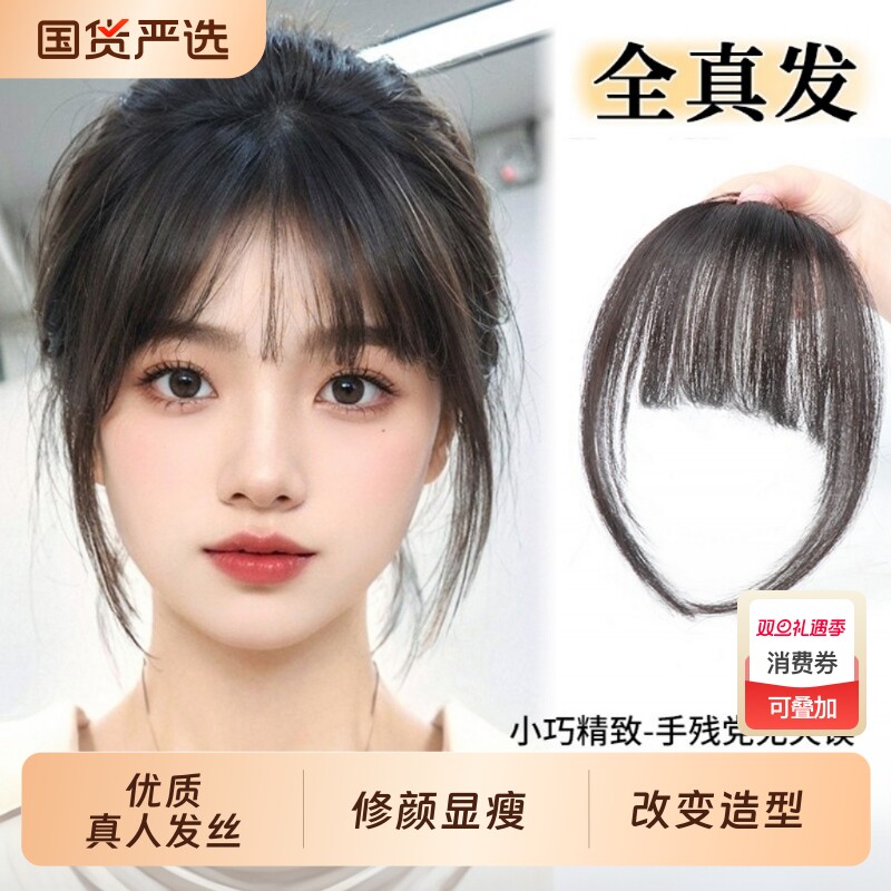 空气刘海假发女片头顶自然前额法式假刘海贴片真发无痕齐刘海八字