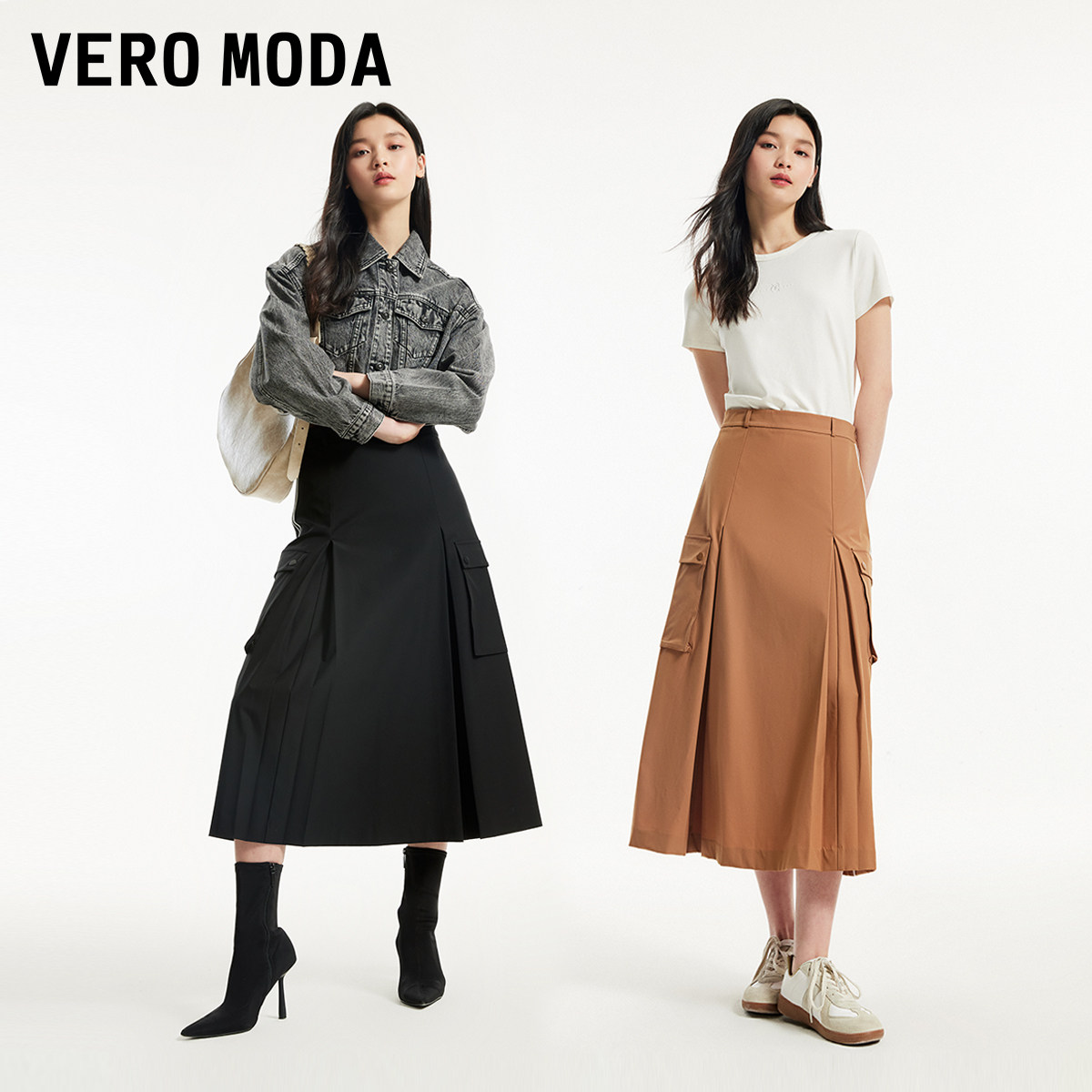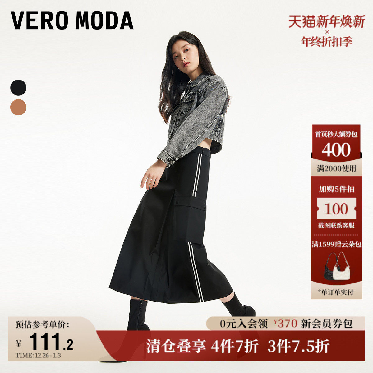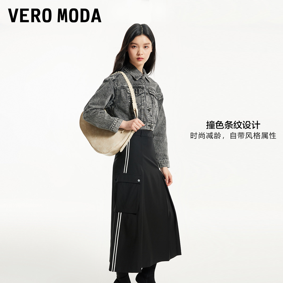 Vero Moda奥莱半身裙秋季新款时尚潮流撞色条纹工装伞裙子流行
