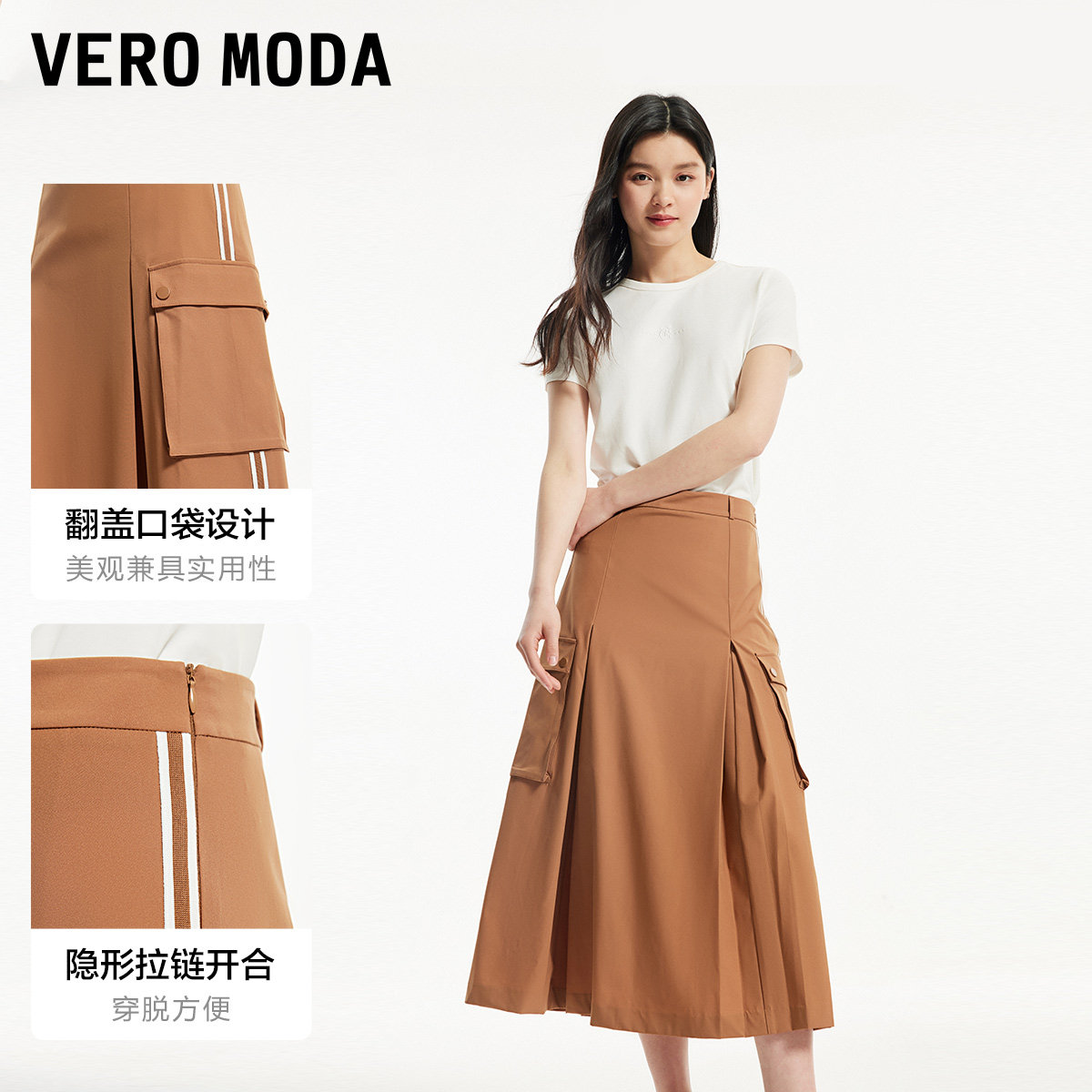 RAPPEYE口袋工装裙美式复古简约a字休闲设计感百搭中长款半身裙潮