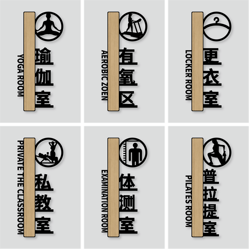 亚克力竖款标志牌瑜伽教室门牌定制瑜伽馆私教室维密普拉提精品高温空中瑜伽健身房舞蹈男女更衣室标识标牌贴