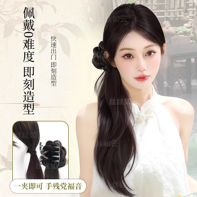 假发侧边女仿真发轻国风旗袍新中式马尾抓夹辫子清冷感假发辫造型