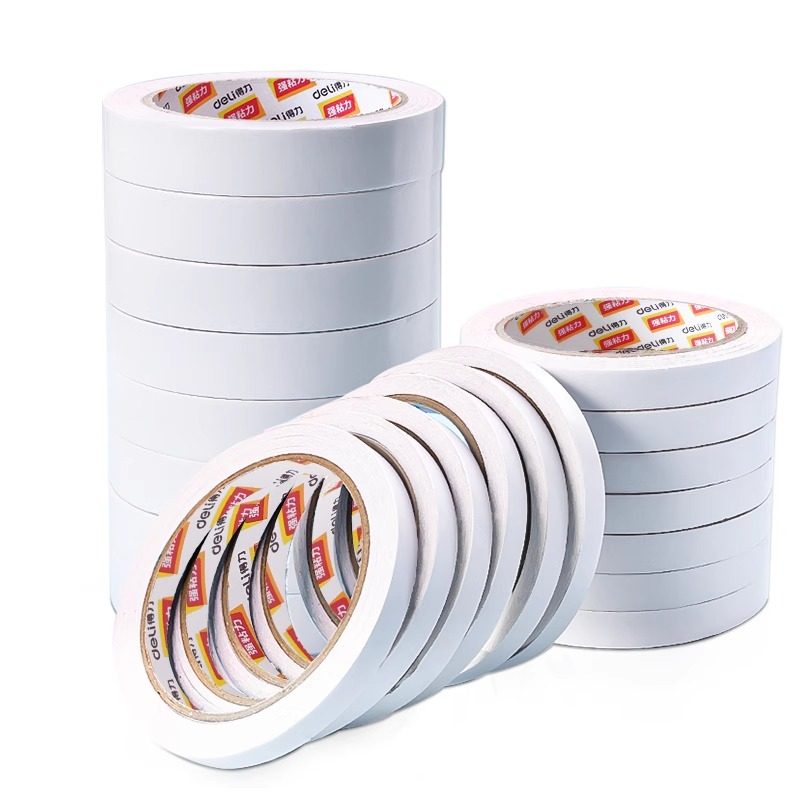得力双面胶高粘度强力固定不留痕儿童手工两面双面胶棉纸双面宽胶带学生用diy手撕超薄透明批发文具办公用品