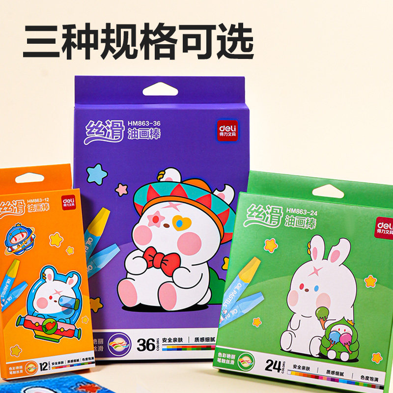 得力油画棒儿童安全无毒不脏手可水洗蜡笔幼儿园专用diy画36色不脏手蜡笔安全学生儿童绘画大容量涂鸦填色笔