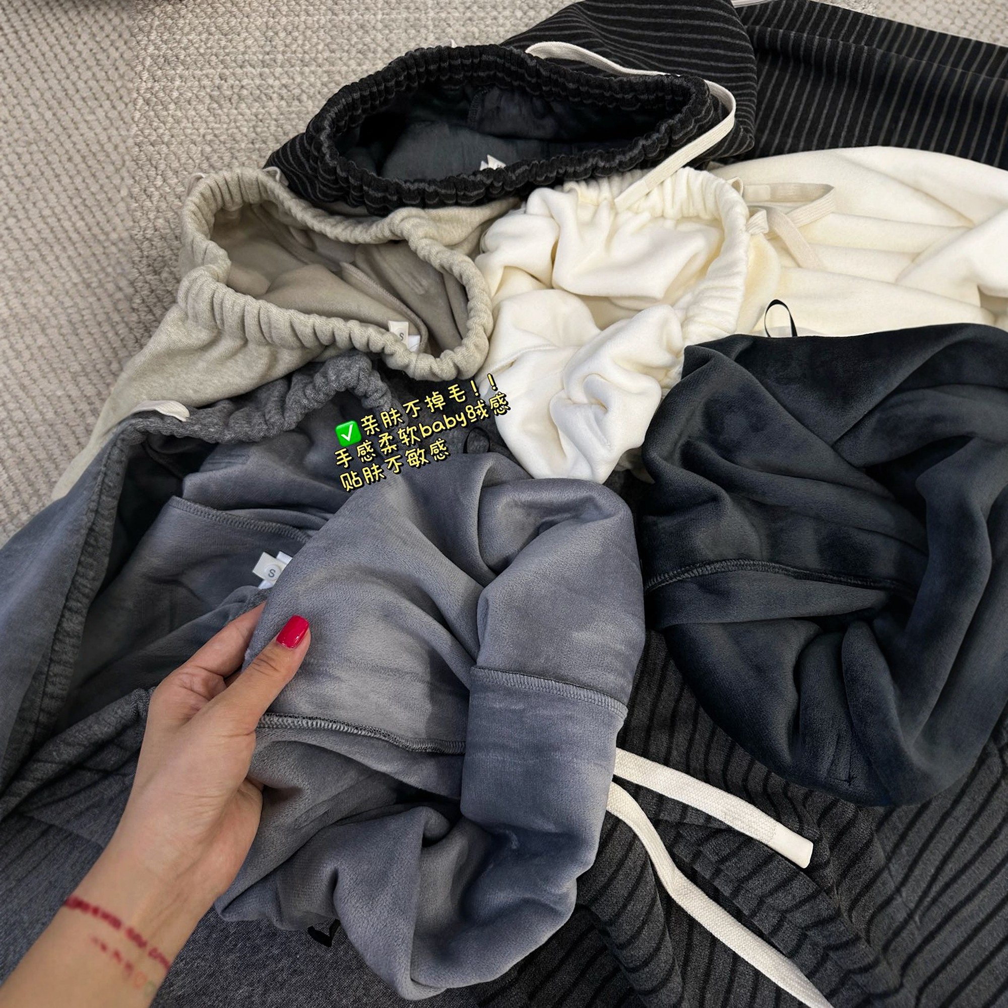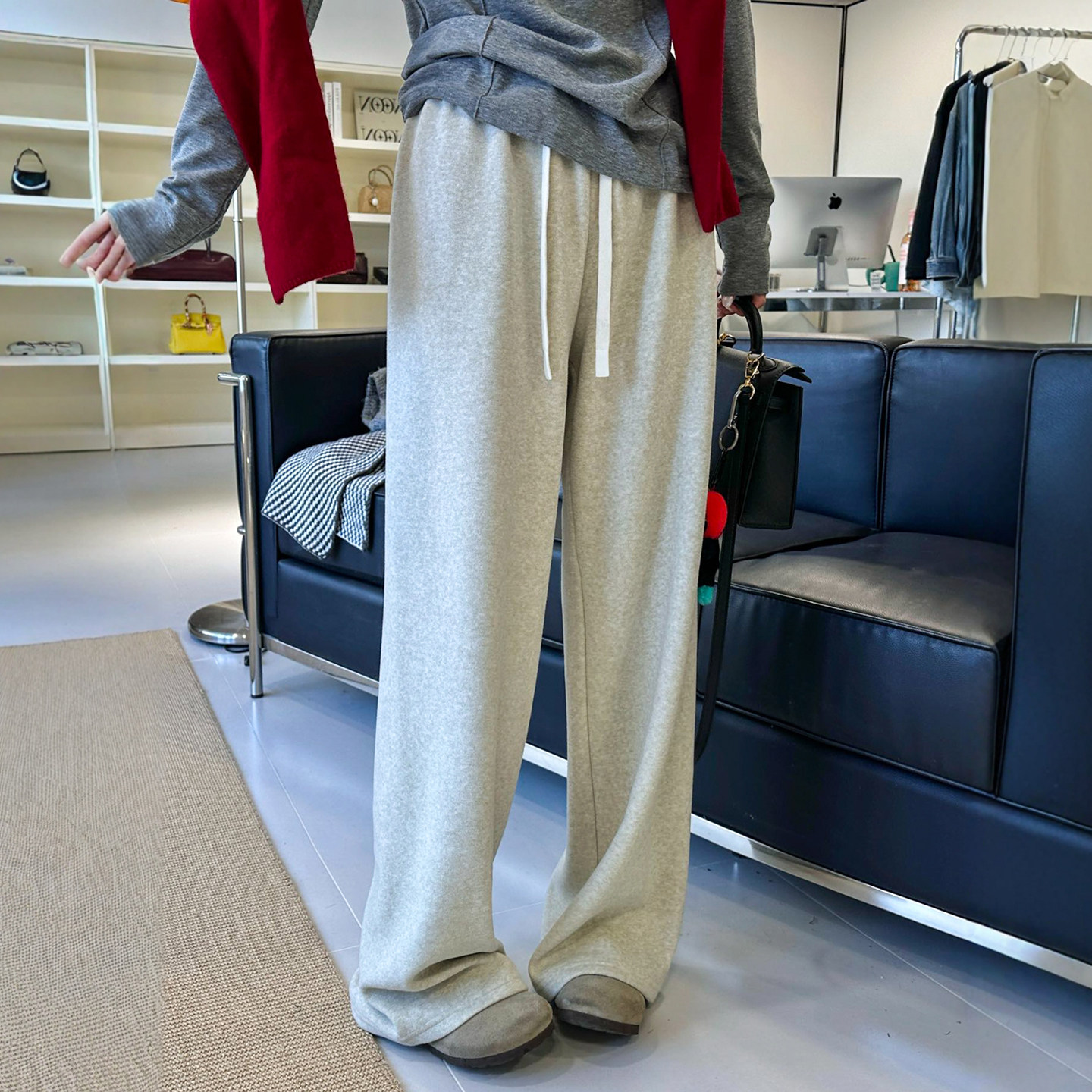 SIINSIIN加绒卫裤女2025新款阔腿运动裤休闲长裤冬季白色直筒裤子