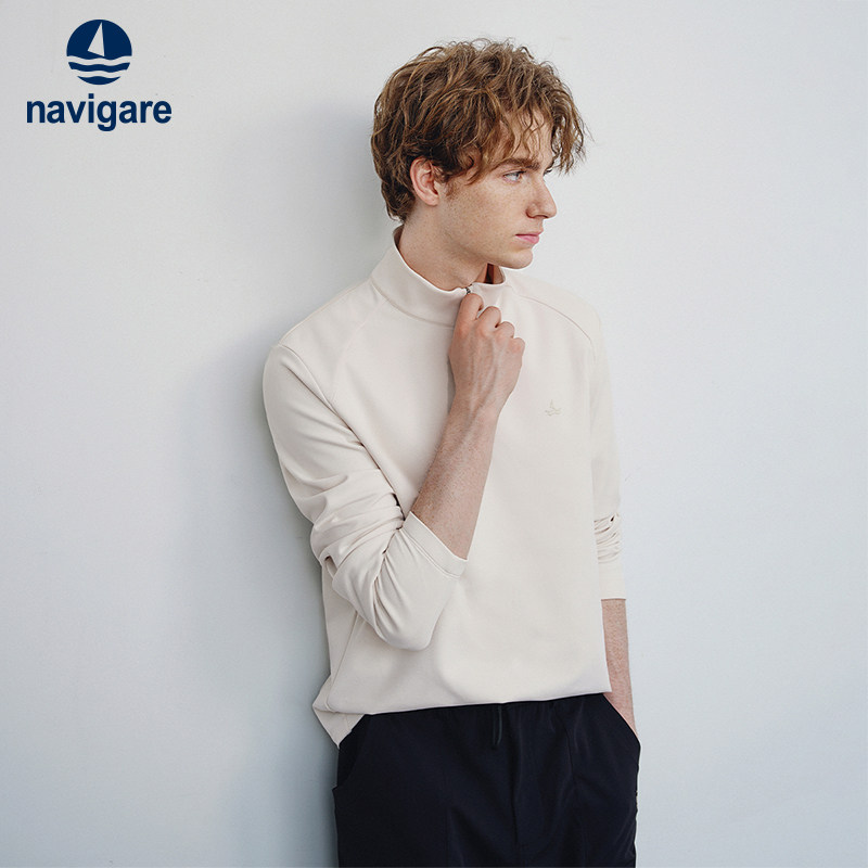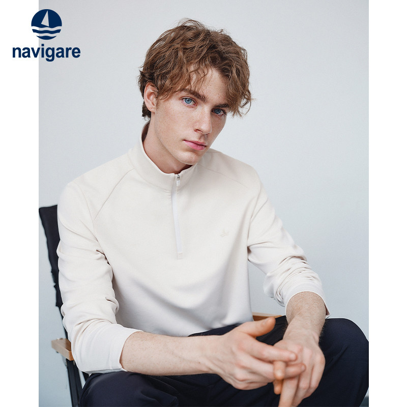 Navigare意大利小帆船休闲白色半开领卫衣男士新款潮流长袖套头衫
