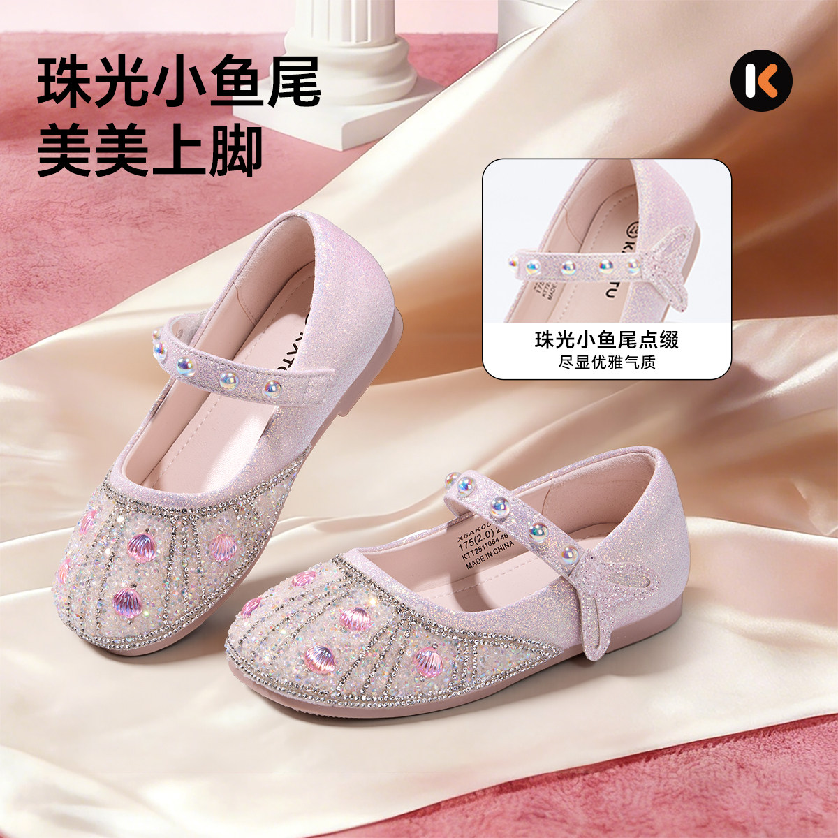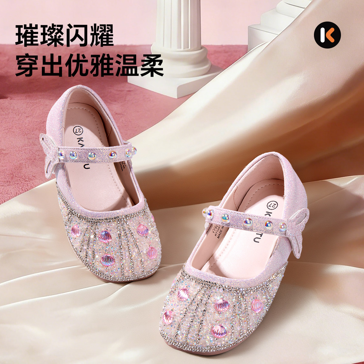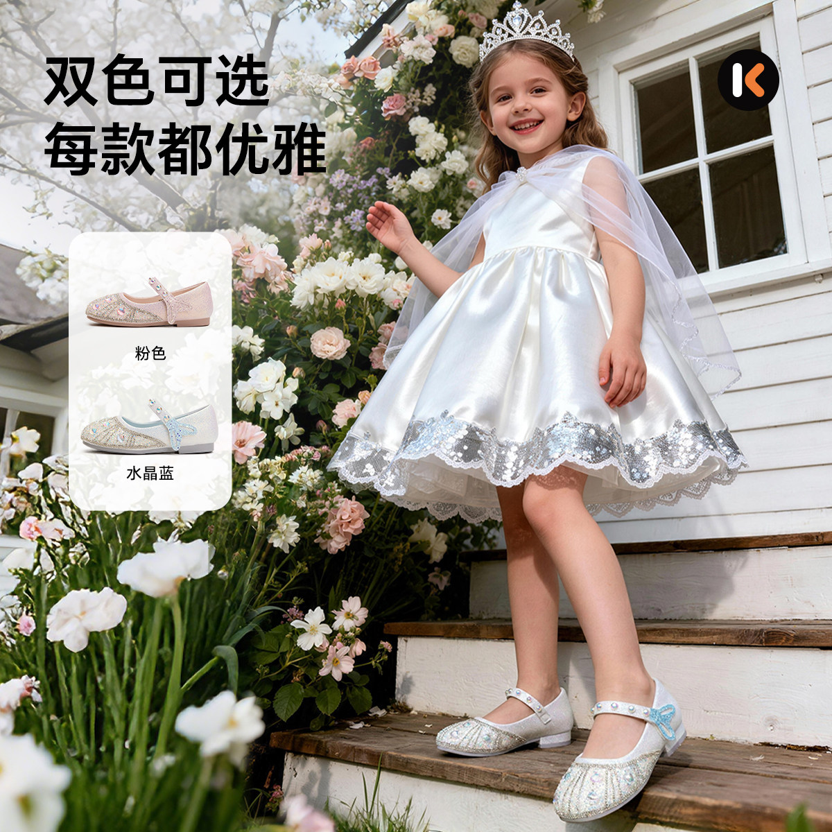 卡特兔女童水晶公主鞋2026年春季新品女童鞋子配裙子水钻女童皮鞋