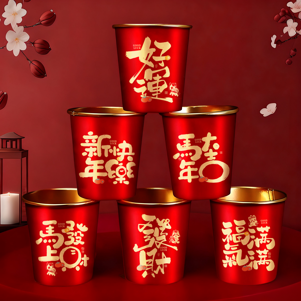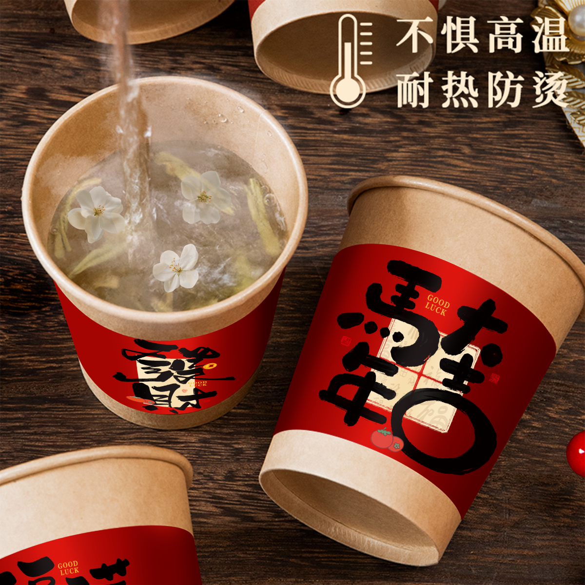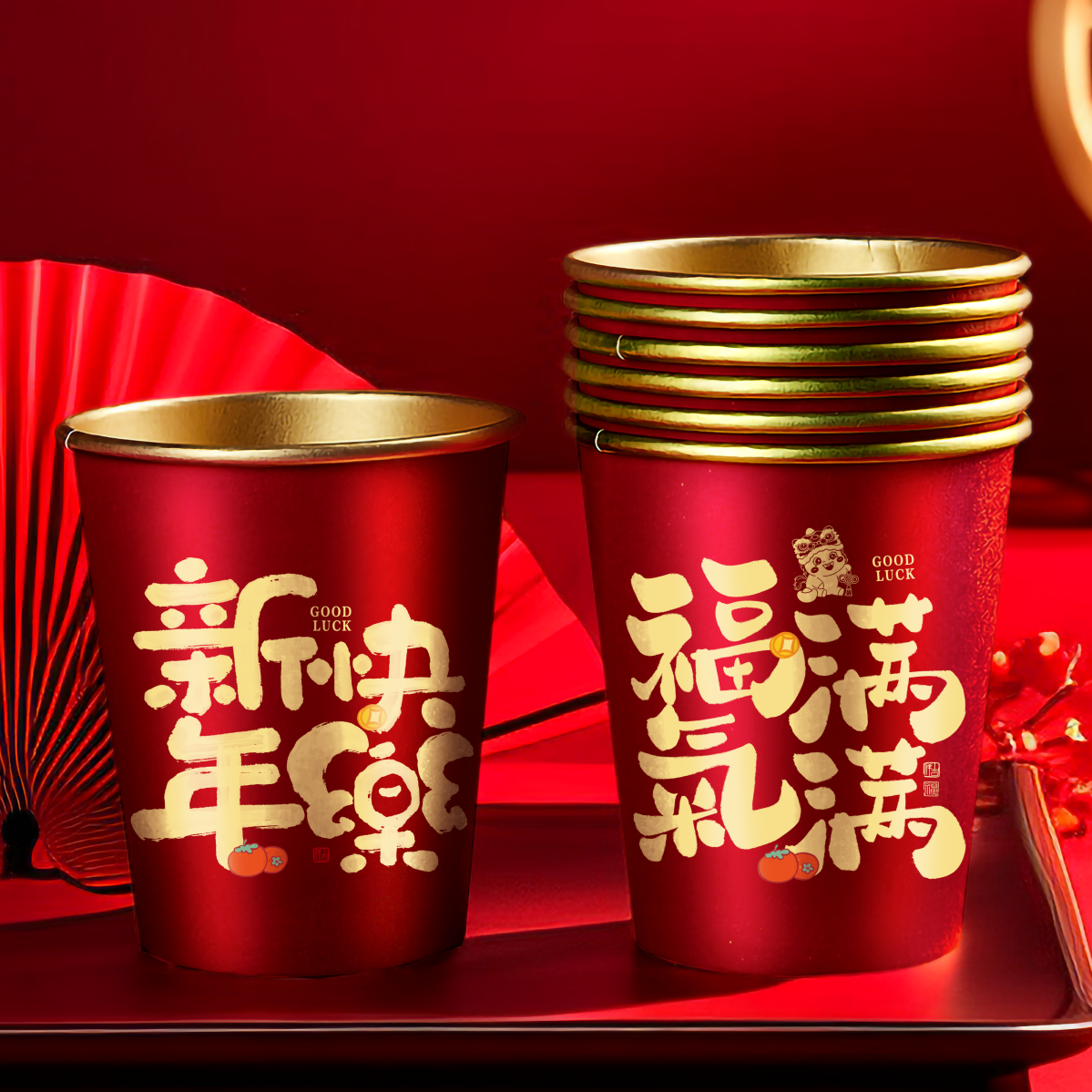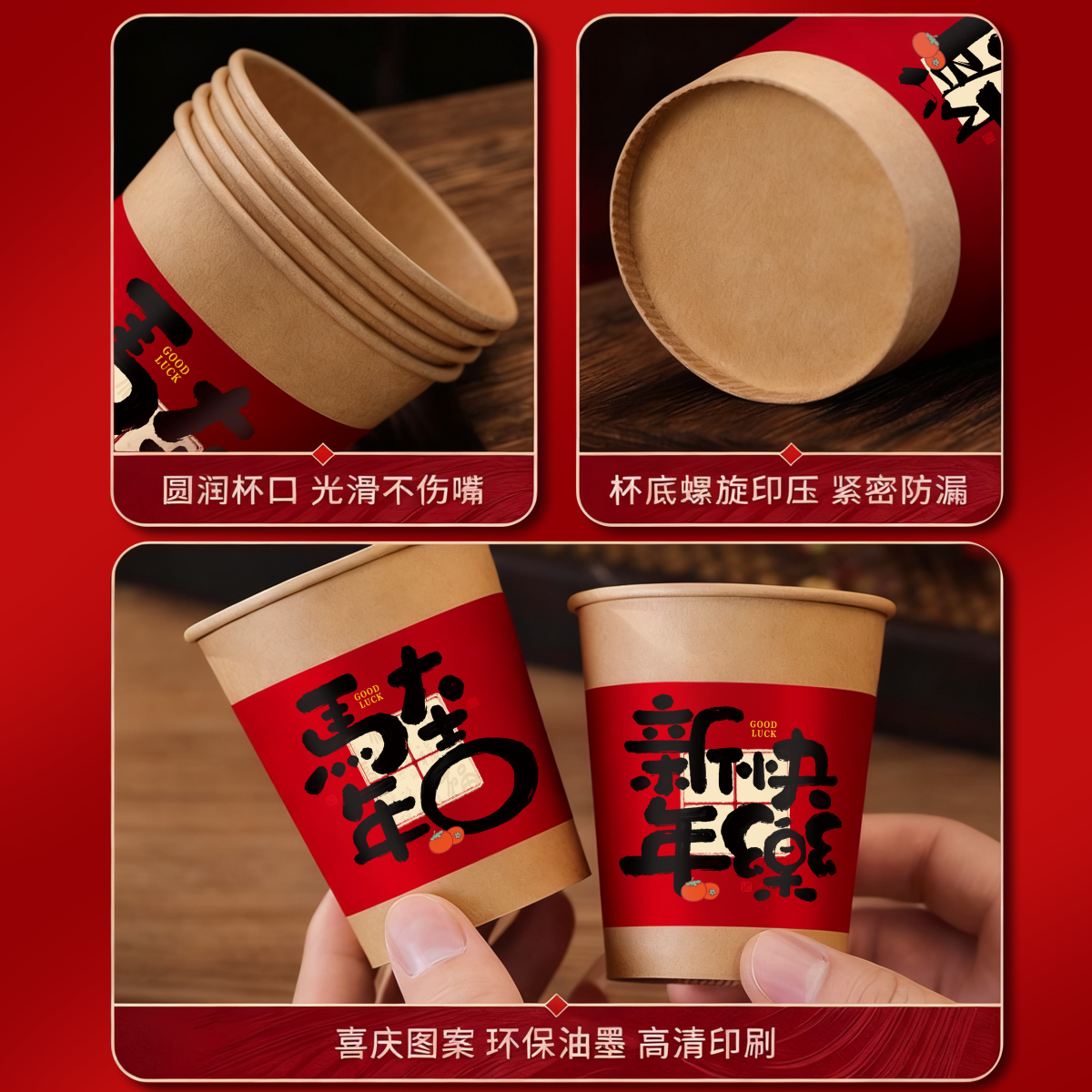 纸杯子一次性水杯加厚家用茶杯高档新年春节过年2026新款马年乔迁