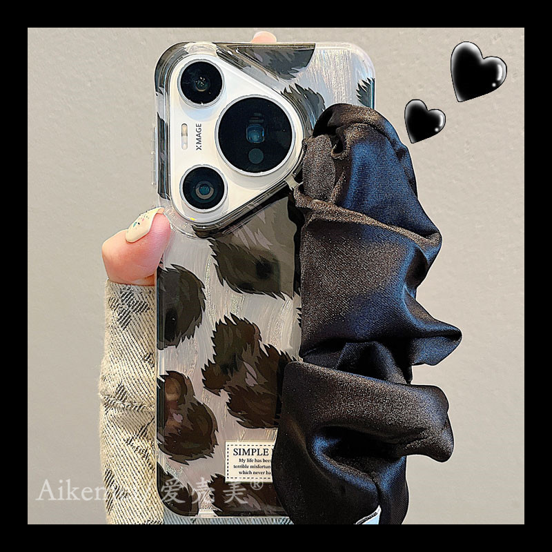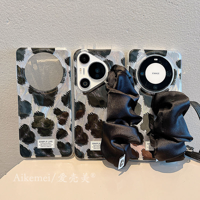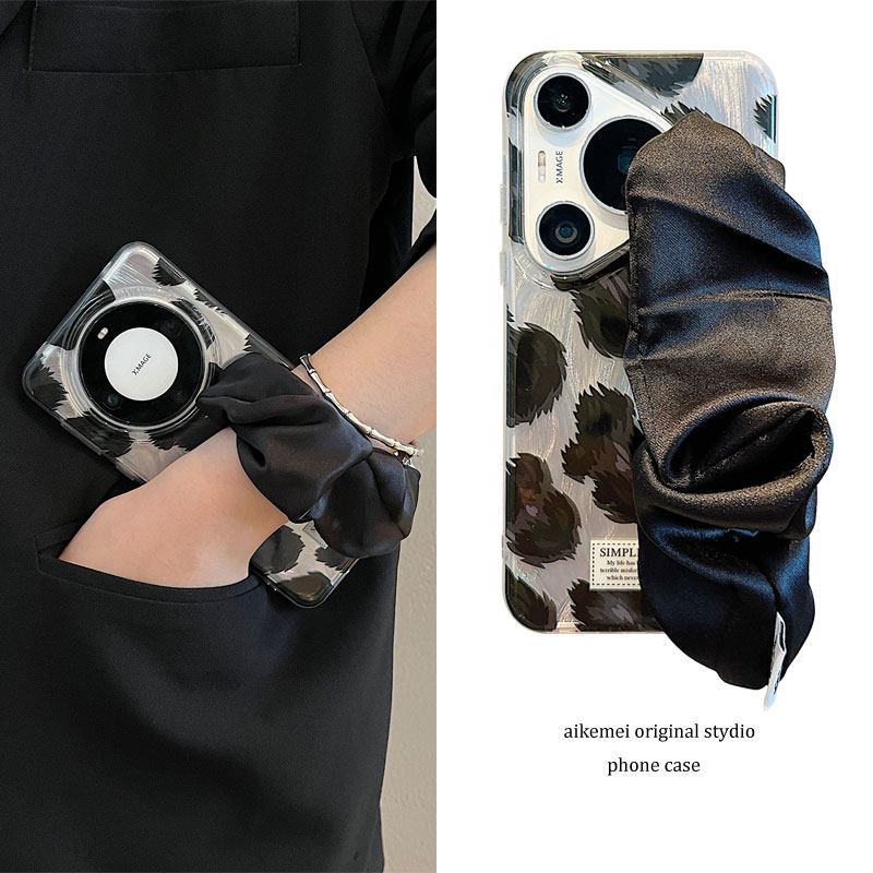 适用华为mate60pro+斜挎手机壳pura70/p60pro高级感羽纱豹纹mate40pro丝巾腕带mate50pro双层p70Ultra防摔女