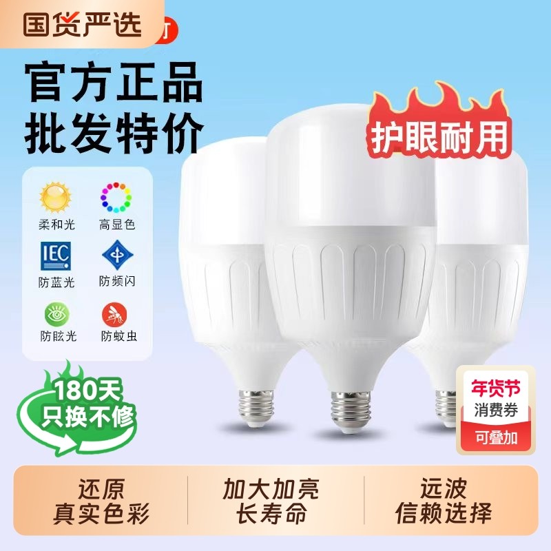 节能led灯泡远波省电正品家用商用大功率光源超亮e27螺旋口球泡