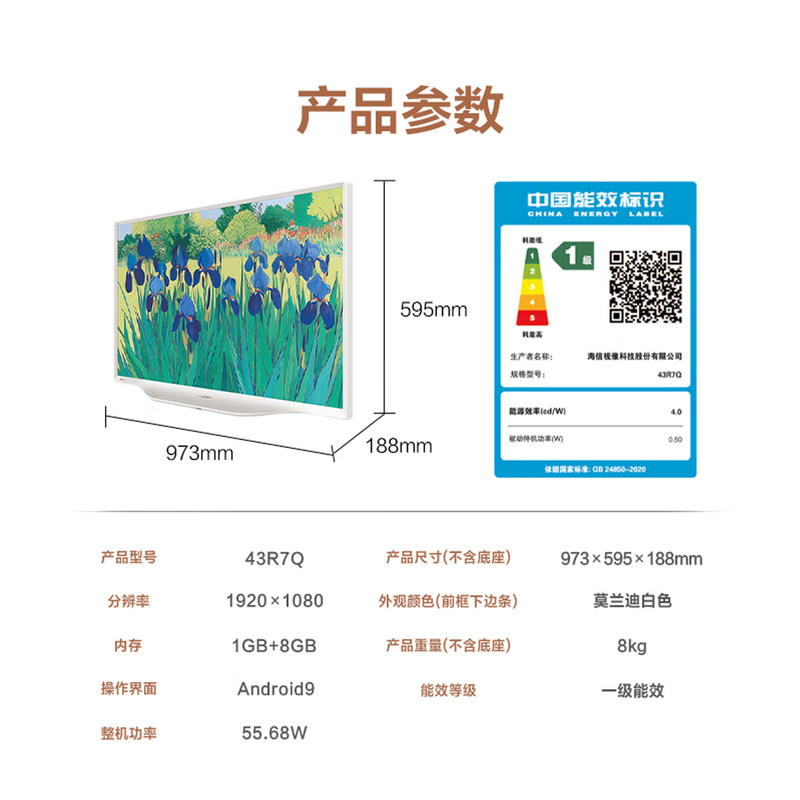 海信43英寸艺术电视43R7Q 氛围家装必入小尺寸原色护眼旗舰店同款