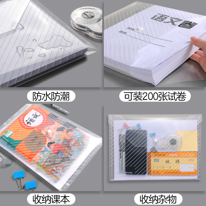 齐心透明a4文件袋防水高中生试卷加厚收纳袋塑料档案袋学生用按扣大容量票据作业产检纽扣资料袋办公用品