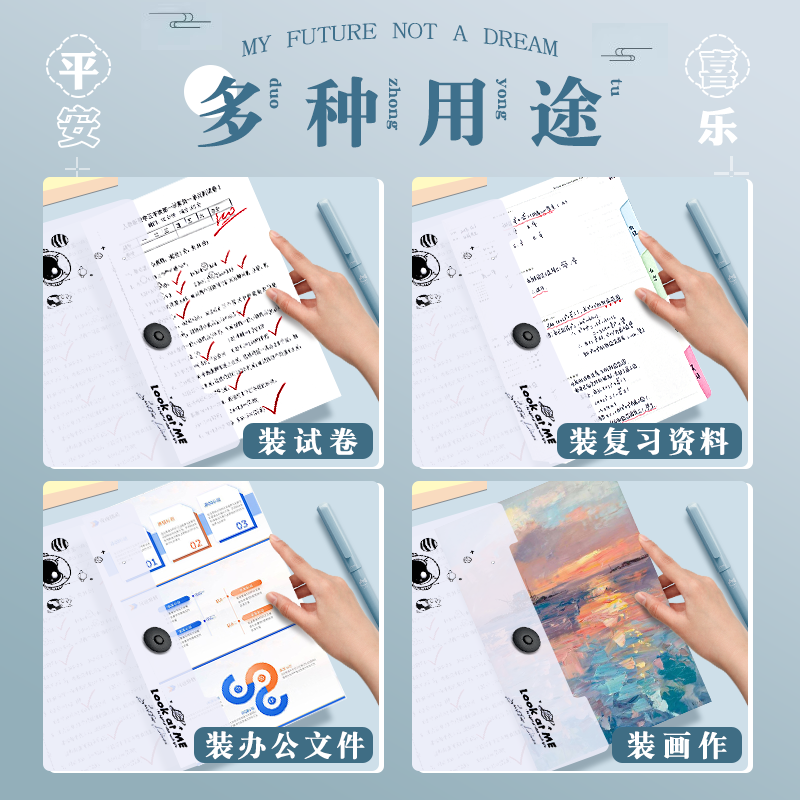 晨光文具学科科目分类袋小学生文件袋拉链式试卷收纳袋透明网纱双层大容量书袋作业资料a4考试专用袋票据产检