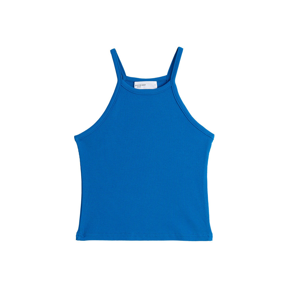 QUEENSHOP 2025春夏新品女装素面直条纹削肩合身背心01098789