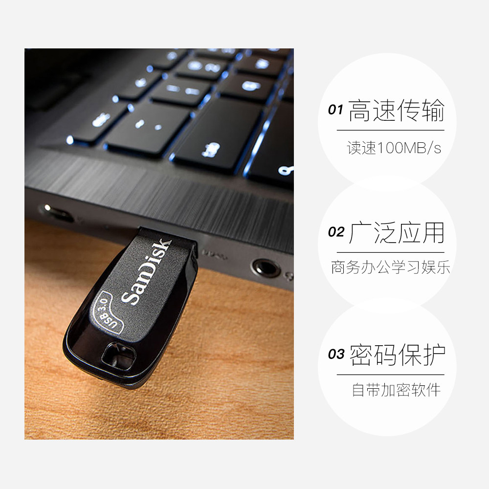 【自营】闪迪U盘32G/64G/128G高速USB3.2优盘CZ410加密电脑闪存盘