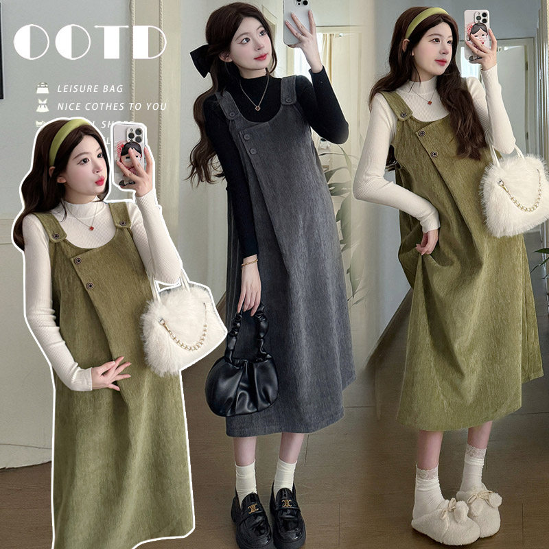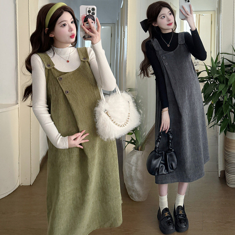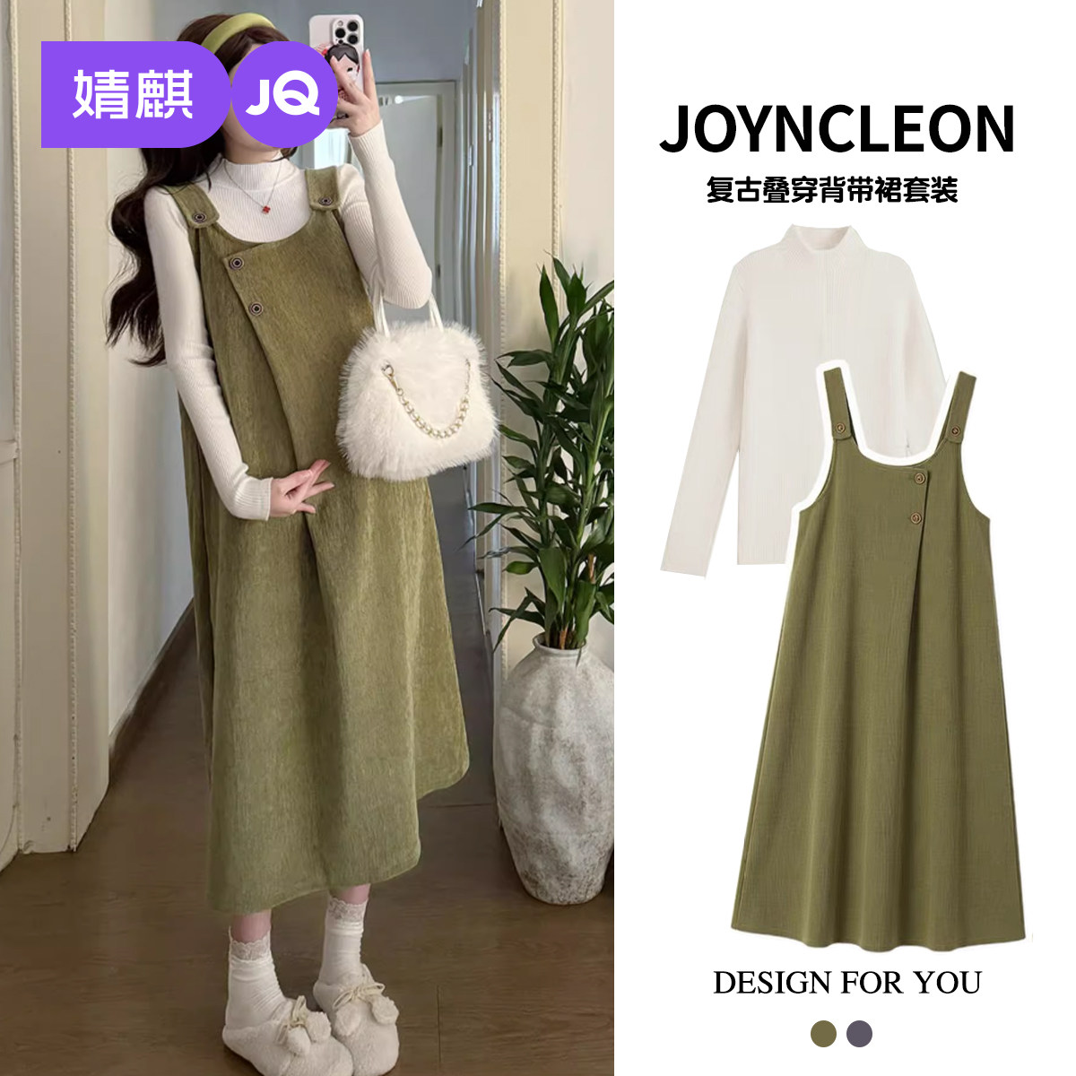 婧麒法式温柔风背带连衣裙女秋冬装高级感松弛感两件套针织打底衫