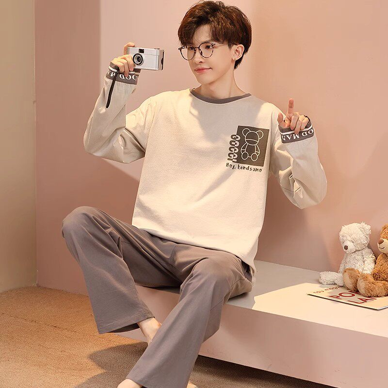 睡衣男士春秋款棉质长袖韩版卡通大码青少年休闲可外穿家居服套装