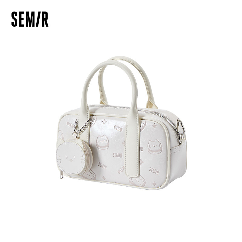 森马包包女斜挎包小众波士顿包手提保龄球包2025新款单肩包设计感
