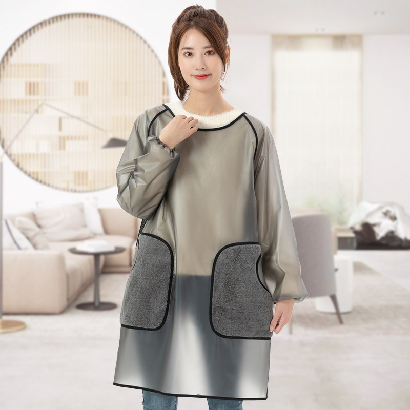 冬季加绒罩衣大人加厚长袖围裙防水韩版女时尚外套家用工作服定制
