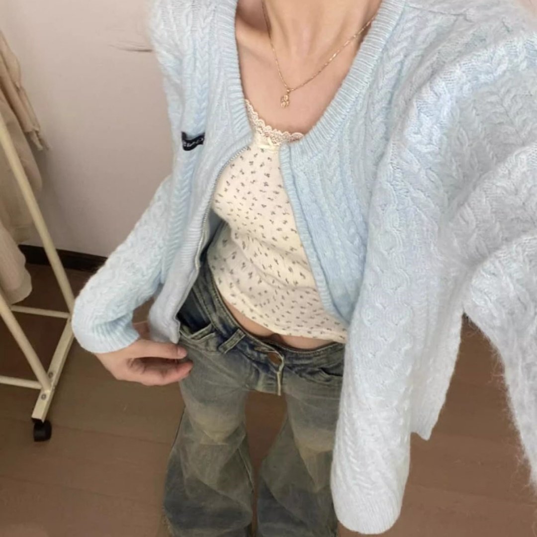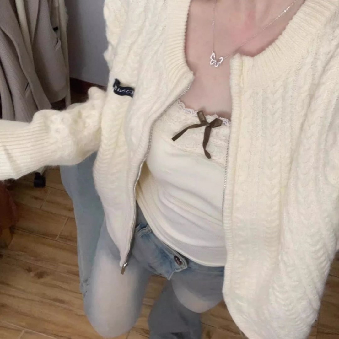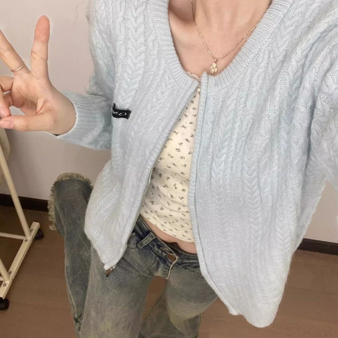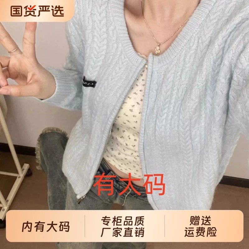 甜美软糯基础多色纽花大码内搭针织衫短款温柔气质拉链开衫外套