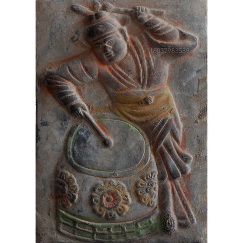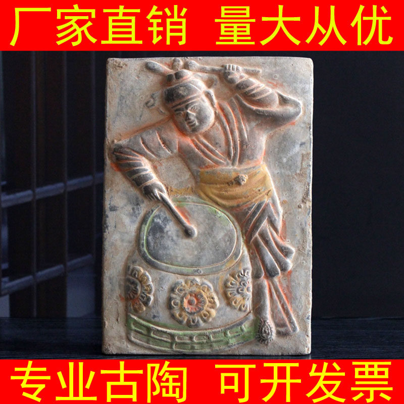 仿古画像砖陶瓷摆件唐代复古建筑装饰彩绘壁画砖雕古玩收藏品拓片