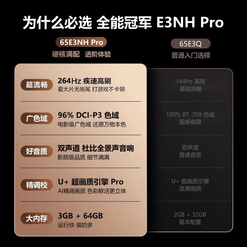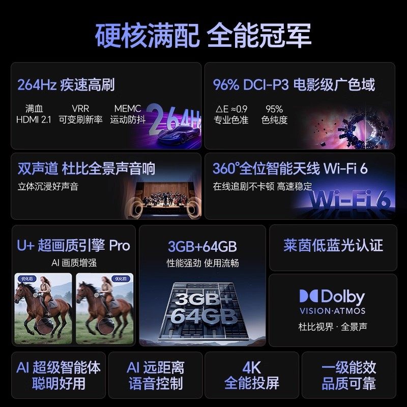 (国补链接20%)海信 65E3NH-PRO 264Hz超疾速高刷硬核满配冠军电视