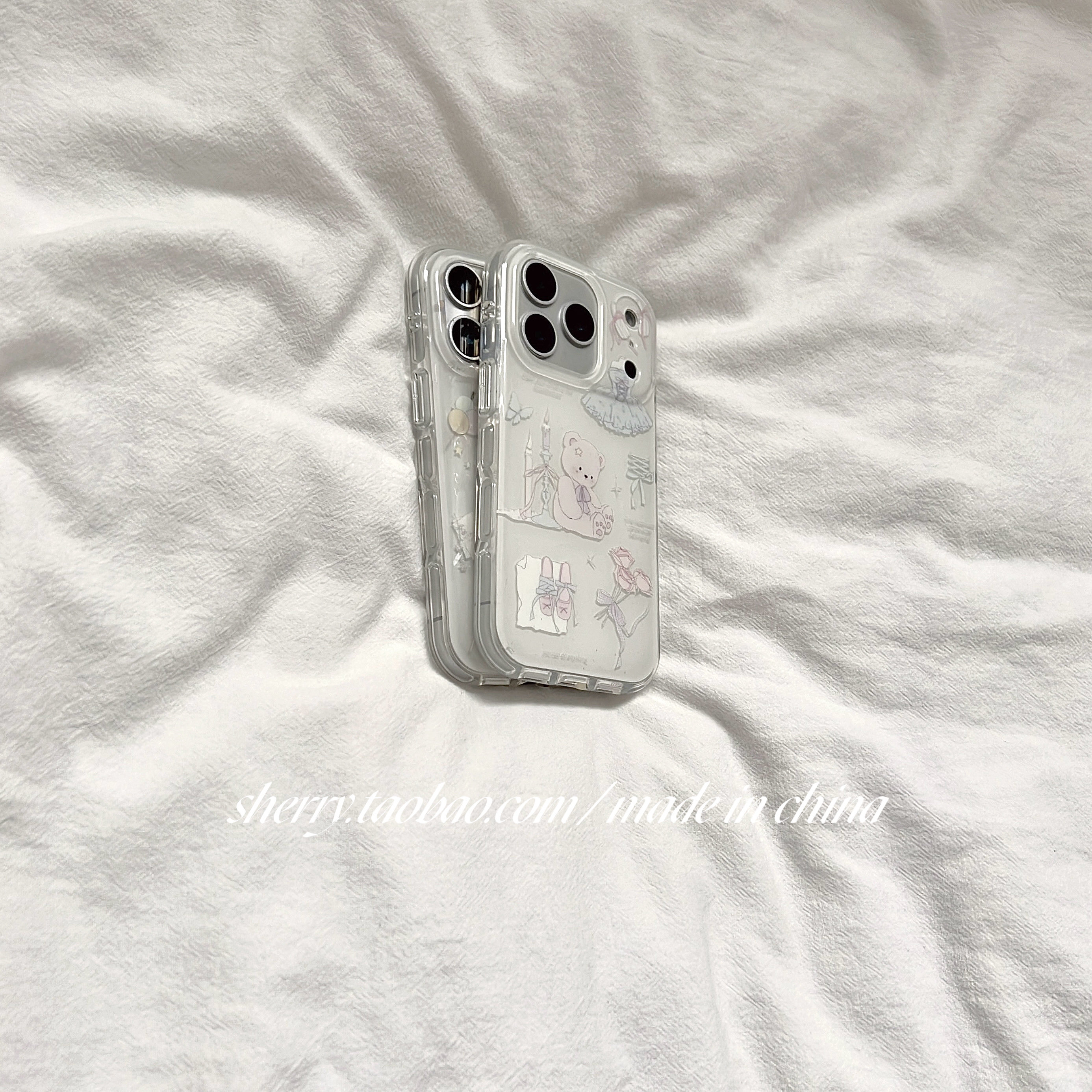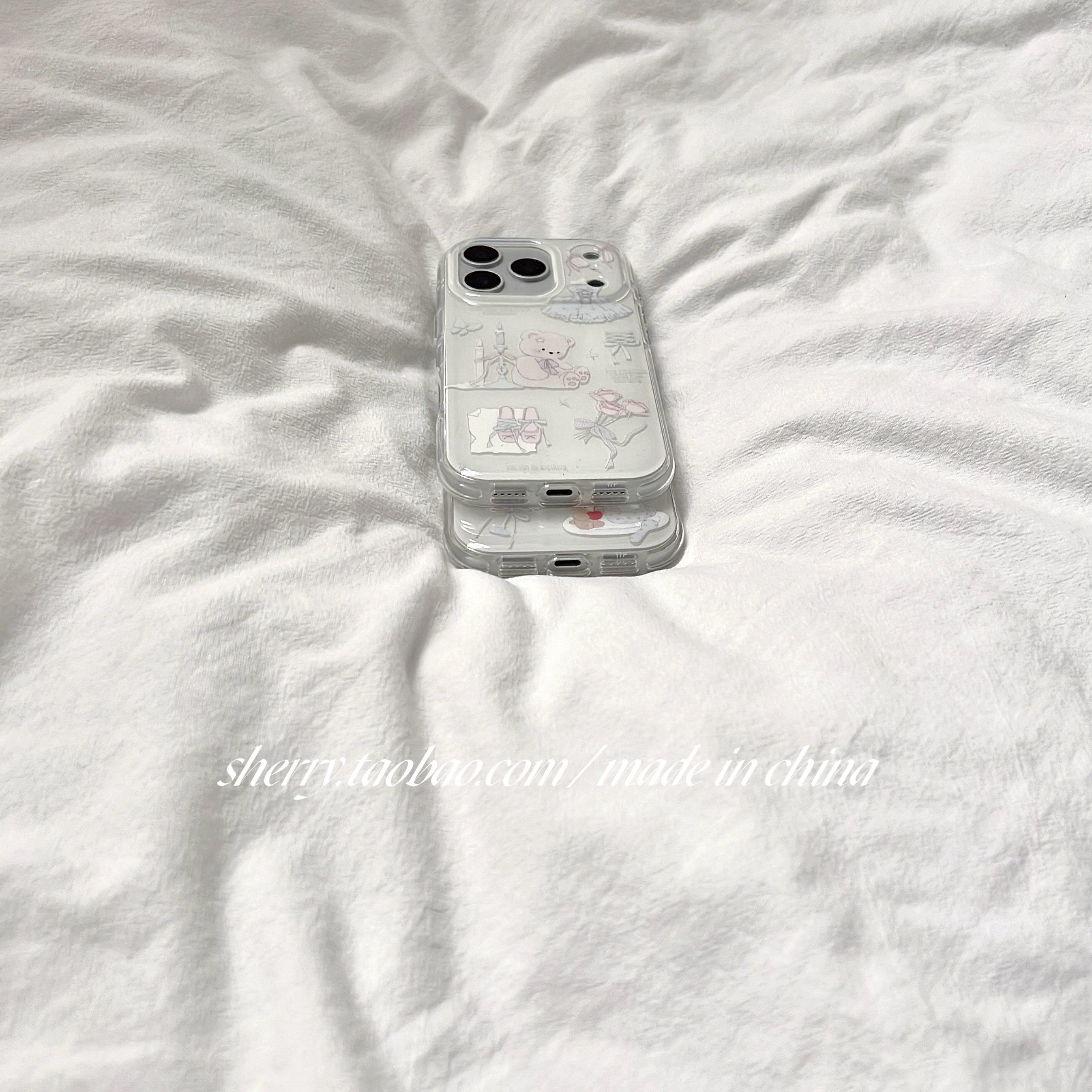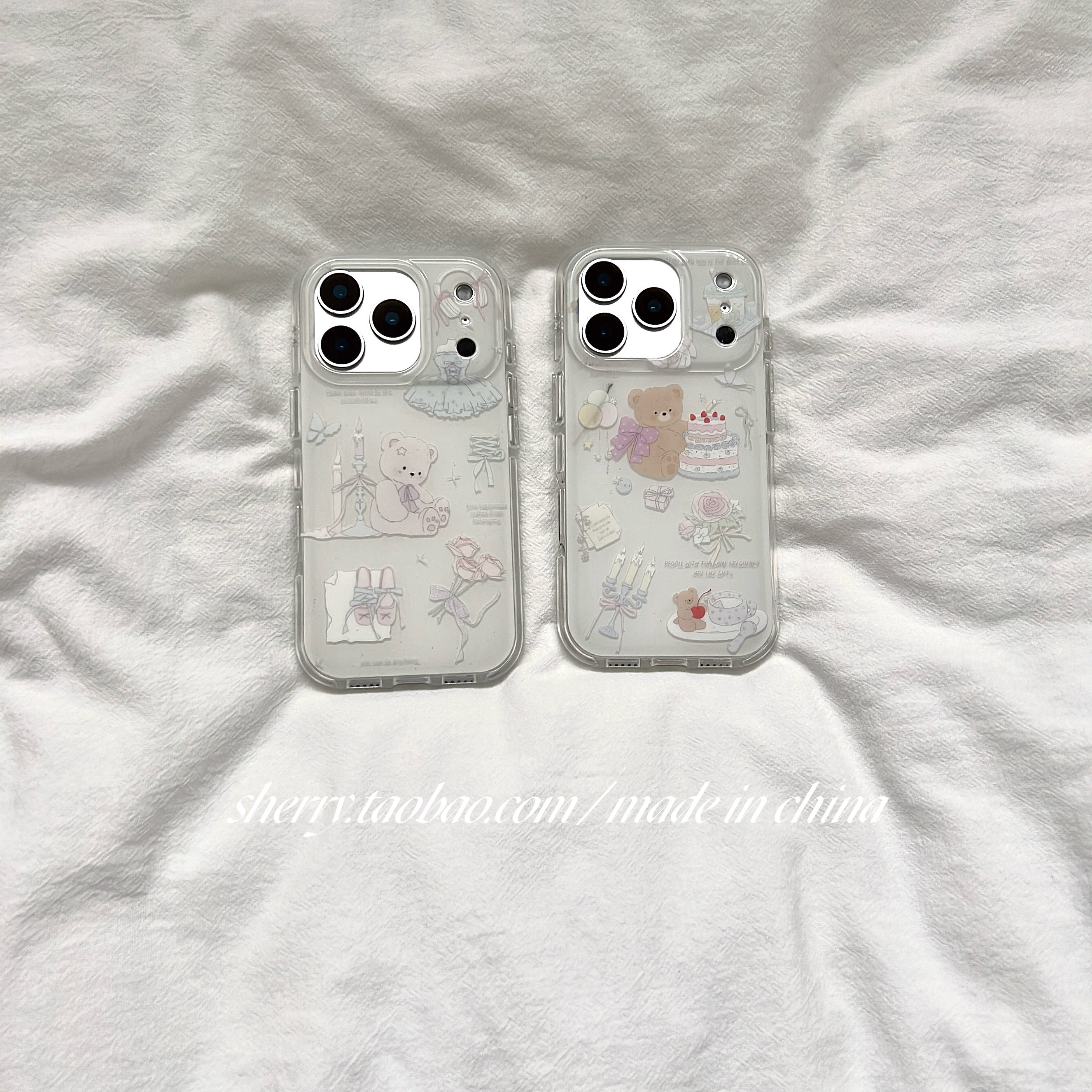 SHERRY*ins风温柔白气球蜡烛蛋糕小熊适用于苹果17ProMax手机壳iPhone16Pro小众少女心15简约14清新卡通可爱