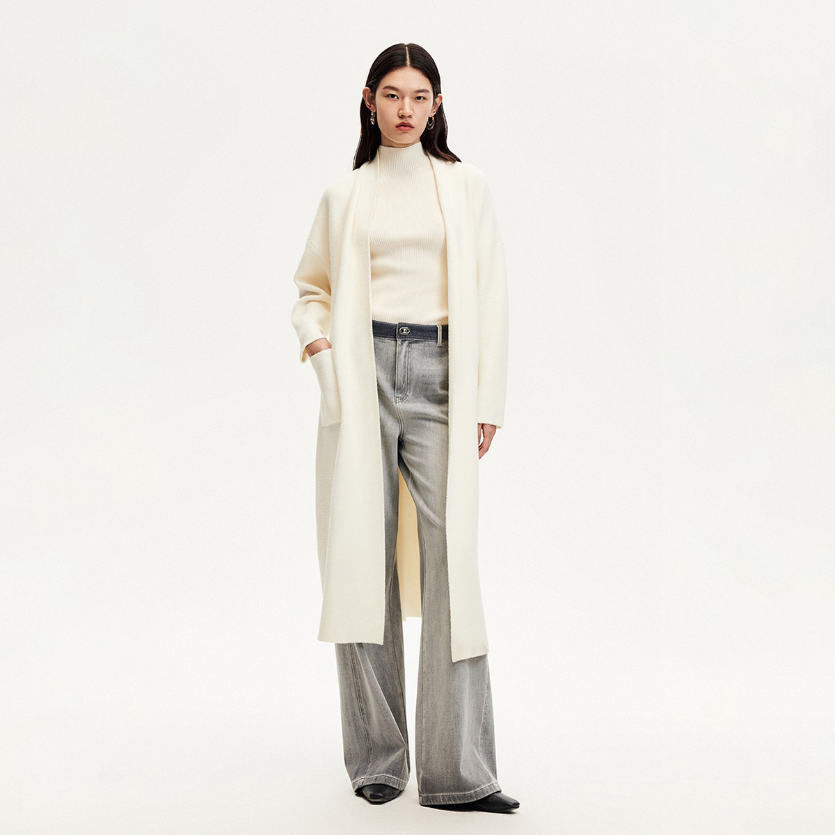 Vero Moda奥莱针织外套女秋冬新款长款风衣式系带气质简约上衣