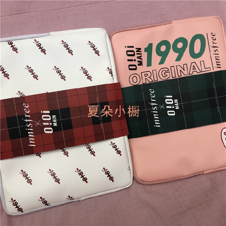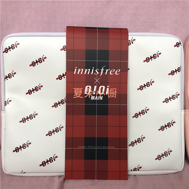 包邮innisfree悦诗风吟电脑包笔记本包OiOi限量款收纳包粉色/白色