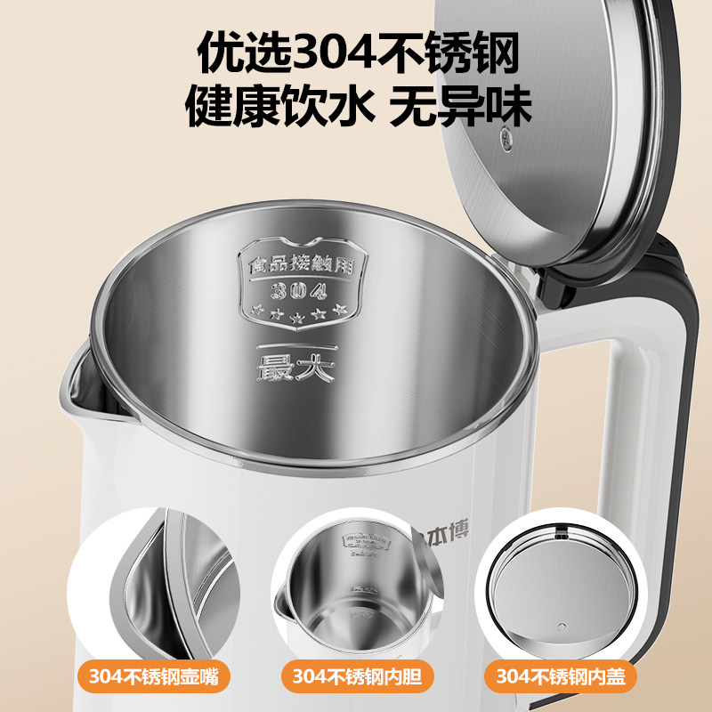 本博电热水壶家用不锈钢电热保温一体烧水壶自动大容量开水壶控温