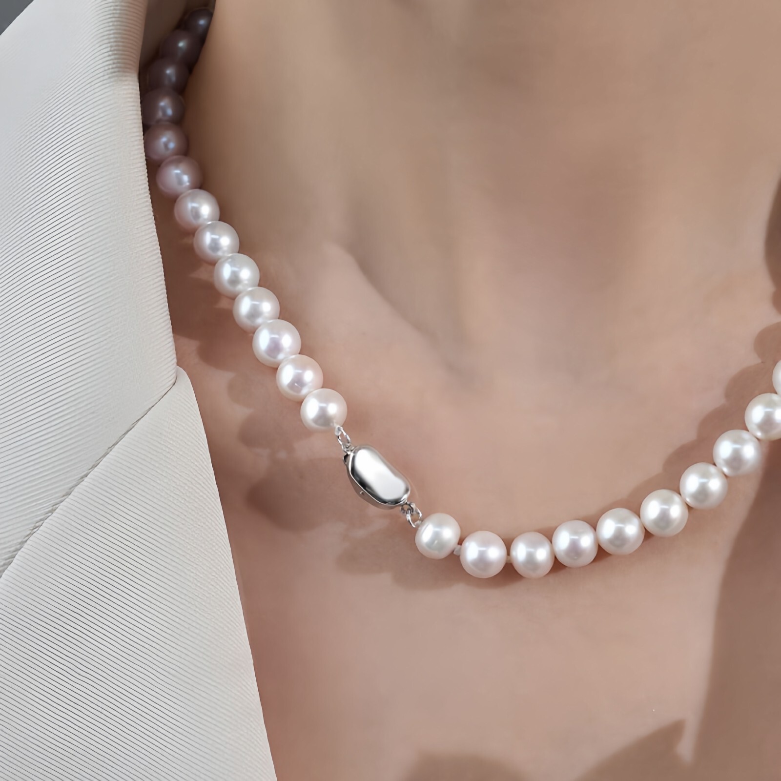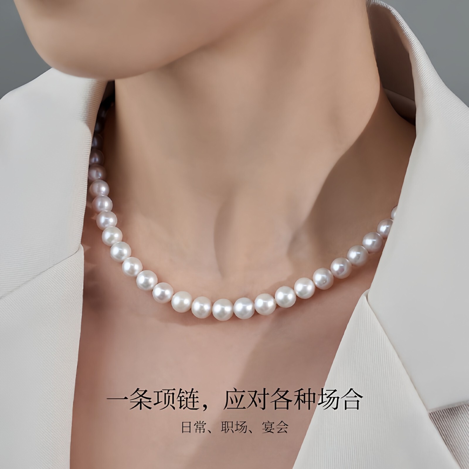 诸暨淡水珍珠项链女S925银高品质近圆微瑕气质颈链送女友节日礼物