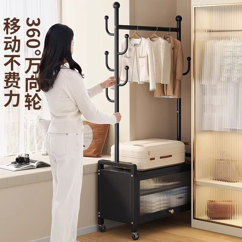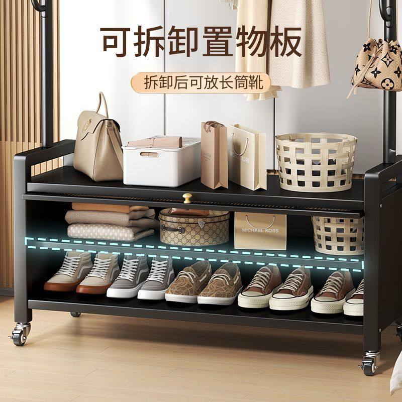 家用挂衣架换鞋凳落地简易衣帽架可移动客厅卧室收纳置物架晾衣架