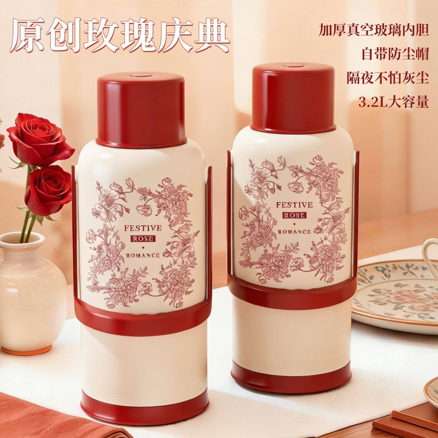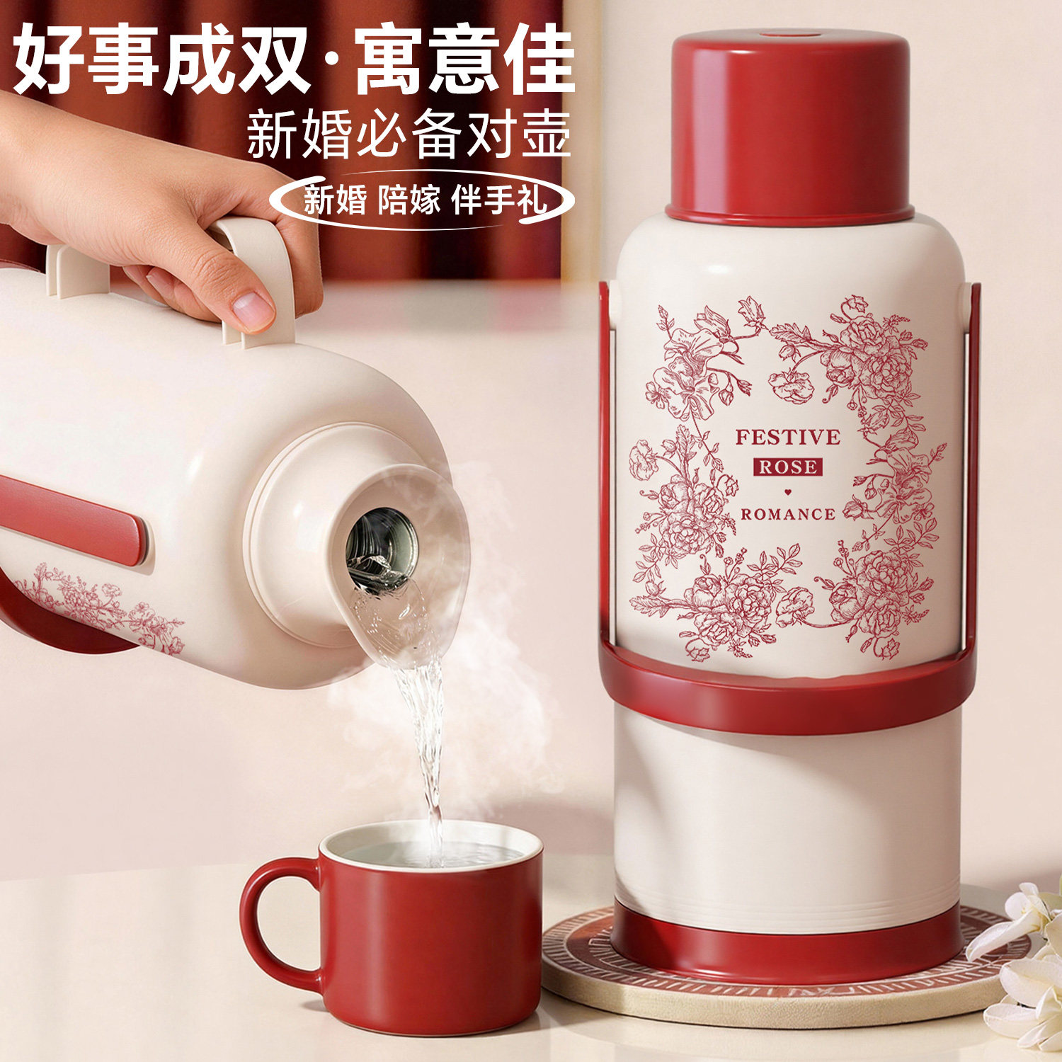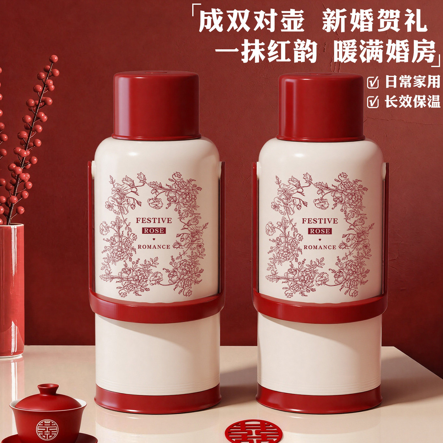 结婚陪嫁保温壶一对热水瓶家用保温红色暖水壶开水瓶2025新款家用