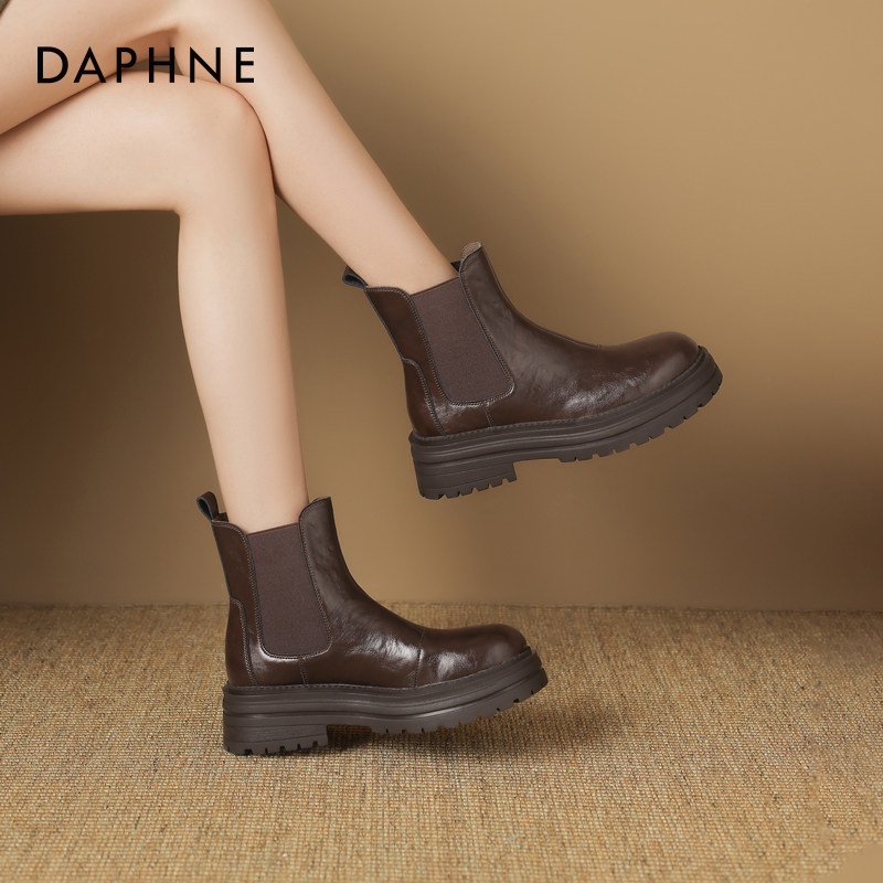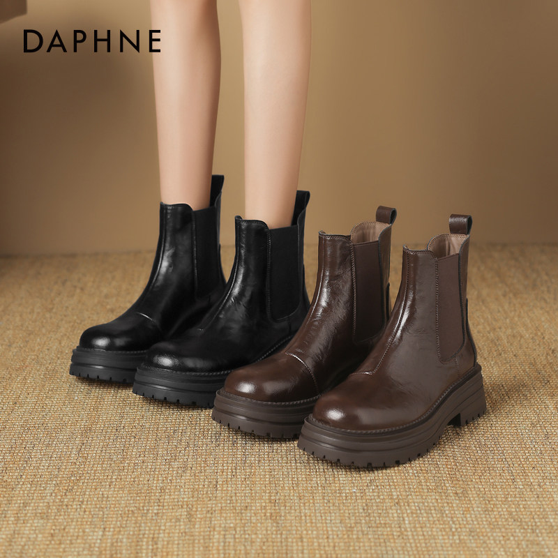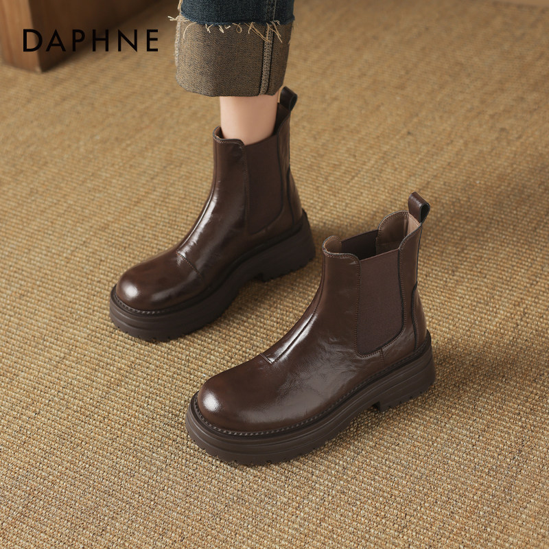 达芙妮切尔西女靴2026新款靴子女春季小短靴厚底皮鞋美拉德马丁靴