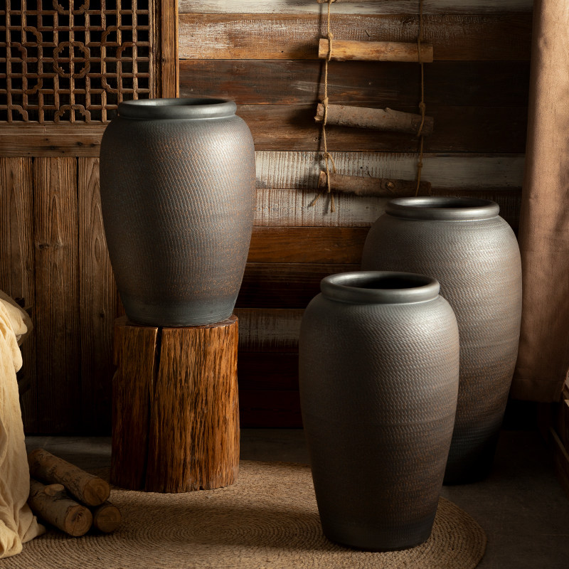 景德镇新中式落地陶瓷大花瓶手工跳刀纹陶罐客厅酒店民宿装饰摆件