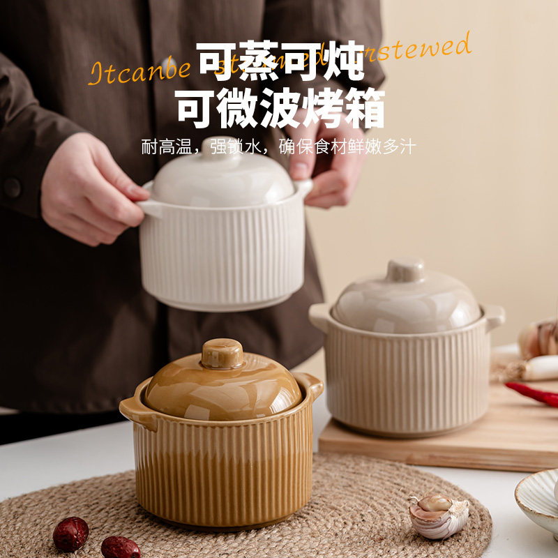 陶瓷炖盅隔水炖家用带盖小瓦罐煲煨汤罐商用沙县小吃蒸燕窝鸡蛋羹