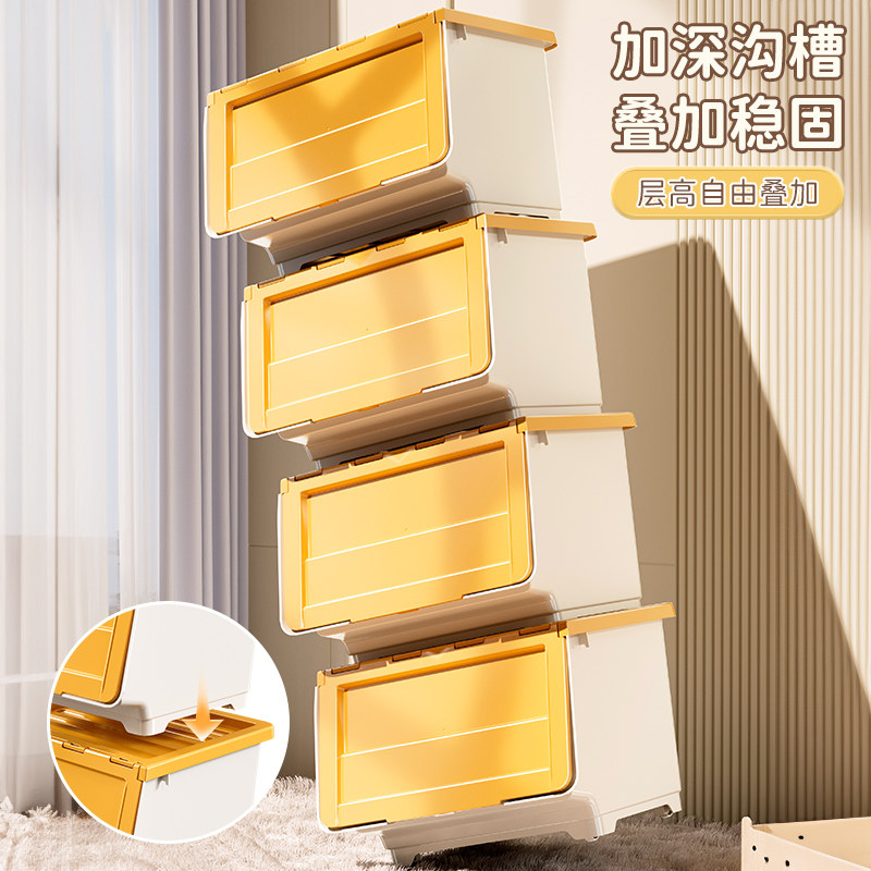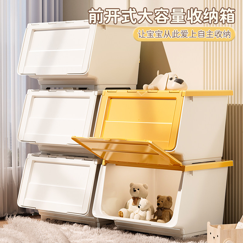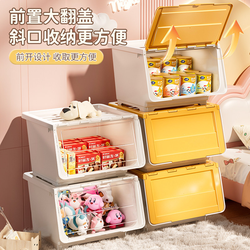 玩具收纳箱前开式家用零食储物箱翻盖整理箱衣柜客厅超大大容量