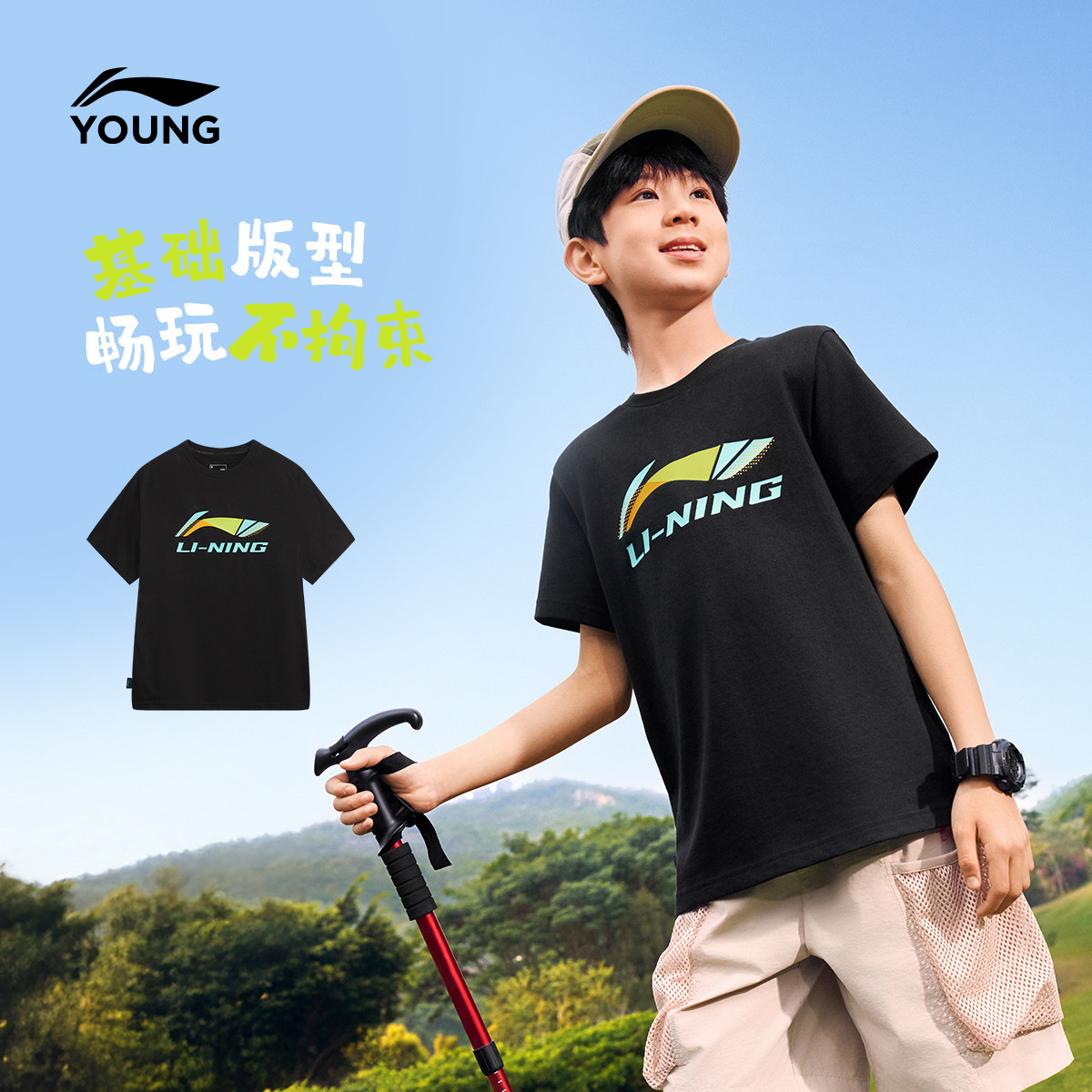 李宁儿童纯棉短袖T恤速干衣2026新款夏季男童装中大童青少年夏装